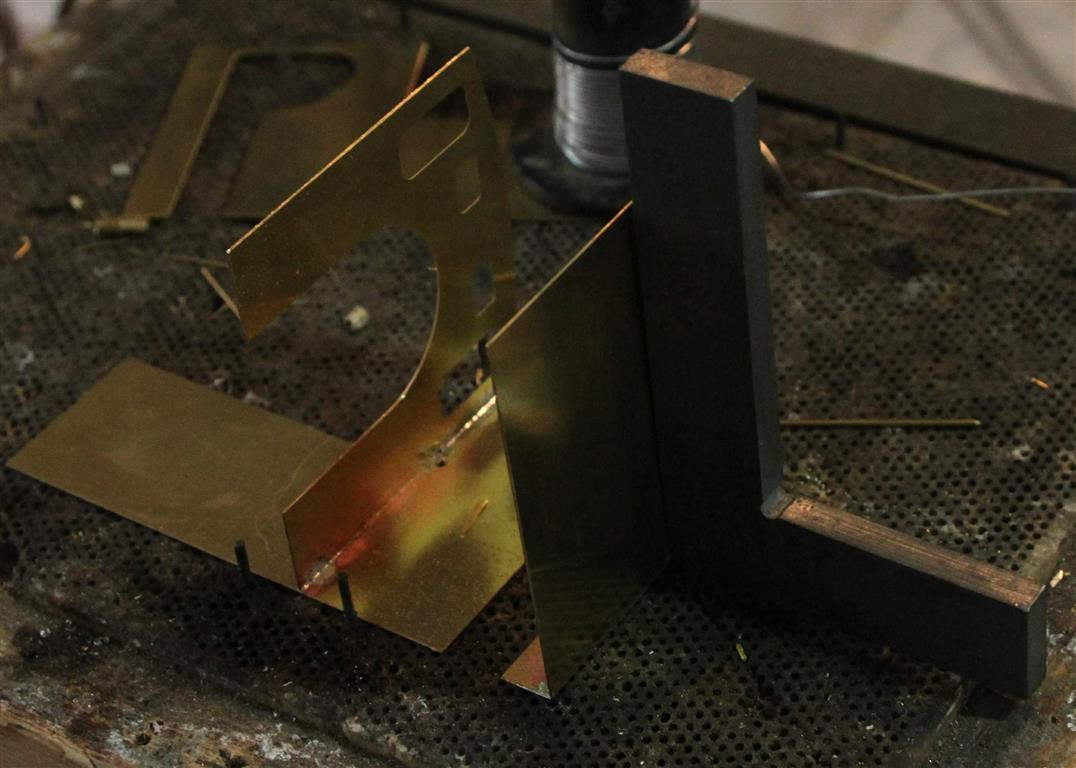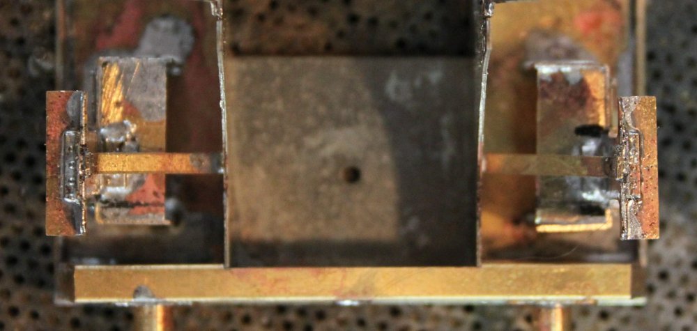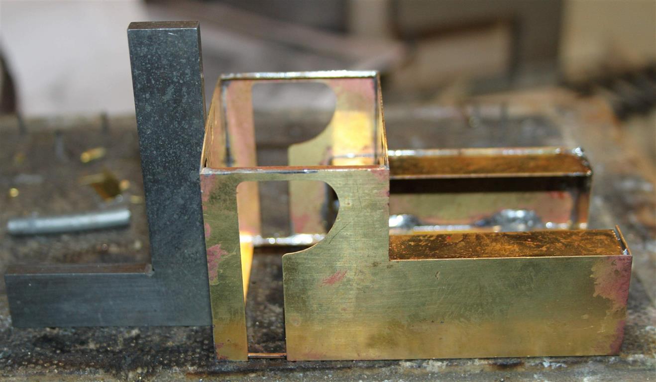 uit een blokje messing, gezaagd uit 10x10mm staf, en een stukje rond 4mm dit dus geprutst.
