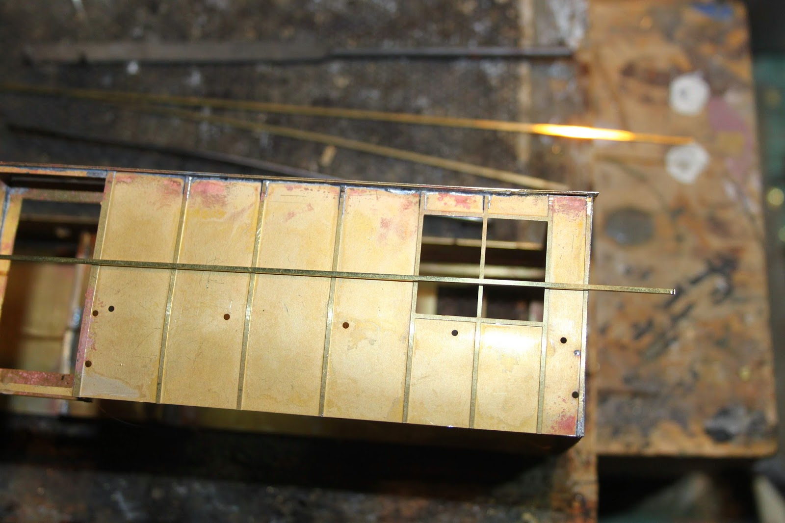 Bij deze wagen is dat niet het geval. Alles is 6 mm hoog en in verstek aan elkaar gemaakt. (materiaal: hout ! )