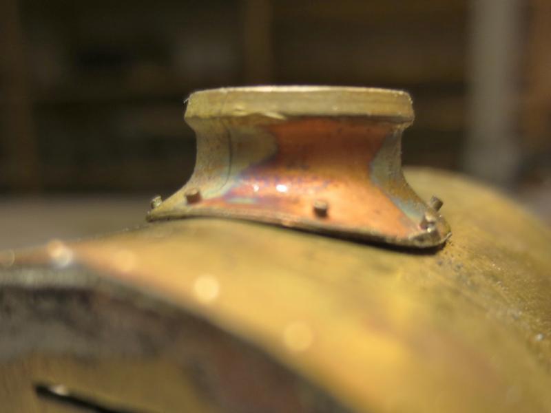 Als ik verder ga met optie 2 en dat heeft eigenlijk mijn voorkeur, dan is er niets overstuur want de materialen uit de kit zijn er gewoon nog. Vooralsnog heb ik ipv de twee 0,5 mm dikke ringen uit de kit (bedoeld voor de voorzijde ketel met afronding) een 1,0 mm dik exemplaar met afgeronde hoek op de draaibank gemaakt. Dat ligt rechts van de buis.