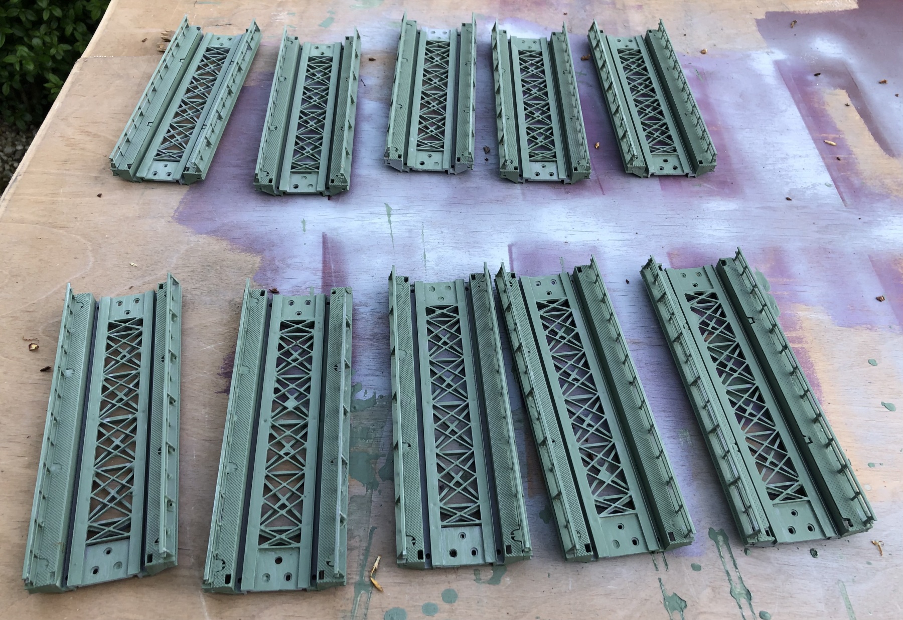 Datzelfde ook voor de brugpijlers. De brug is een tijdje buiten beeld gebleven maar die kan nu ook weer worden geplaatst. Tenminste als ik het groen van de brugdelen nog iets heb afgevlakt, want dat is me iets te fel.