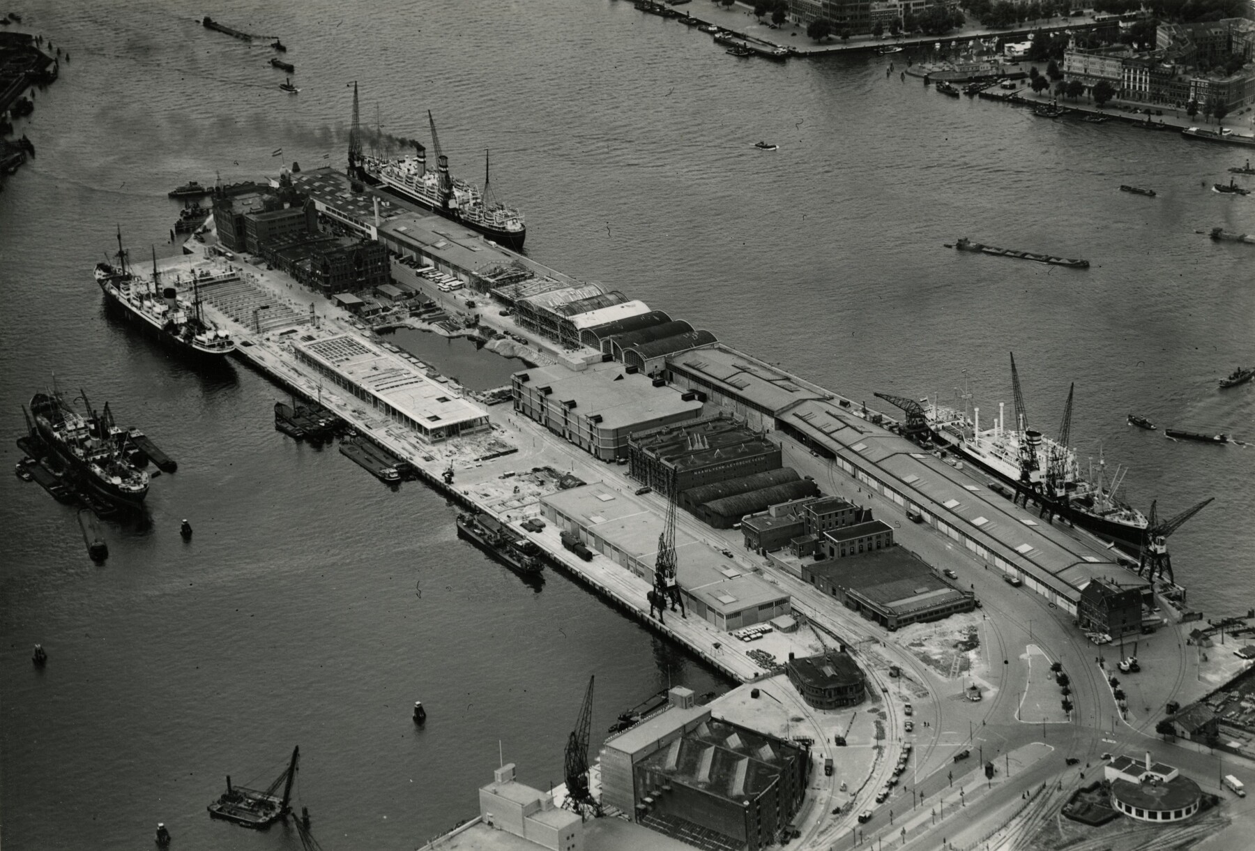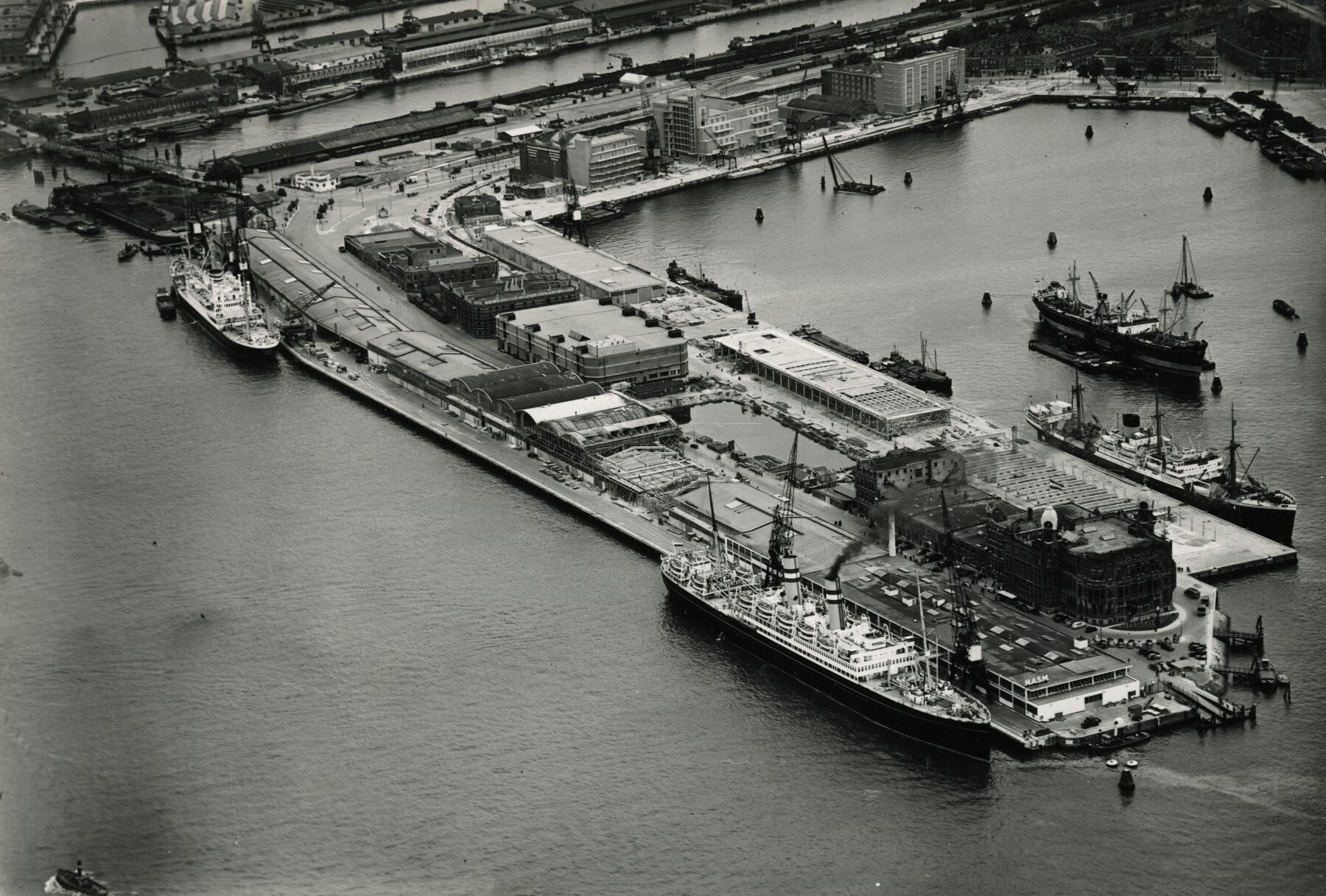 Wilhelminakade-vanuit-ZO-met-Goederenkantoor-1950-NL-RtSA-4232-XIV-404-14-01-2