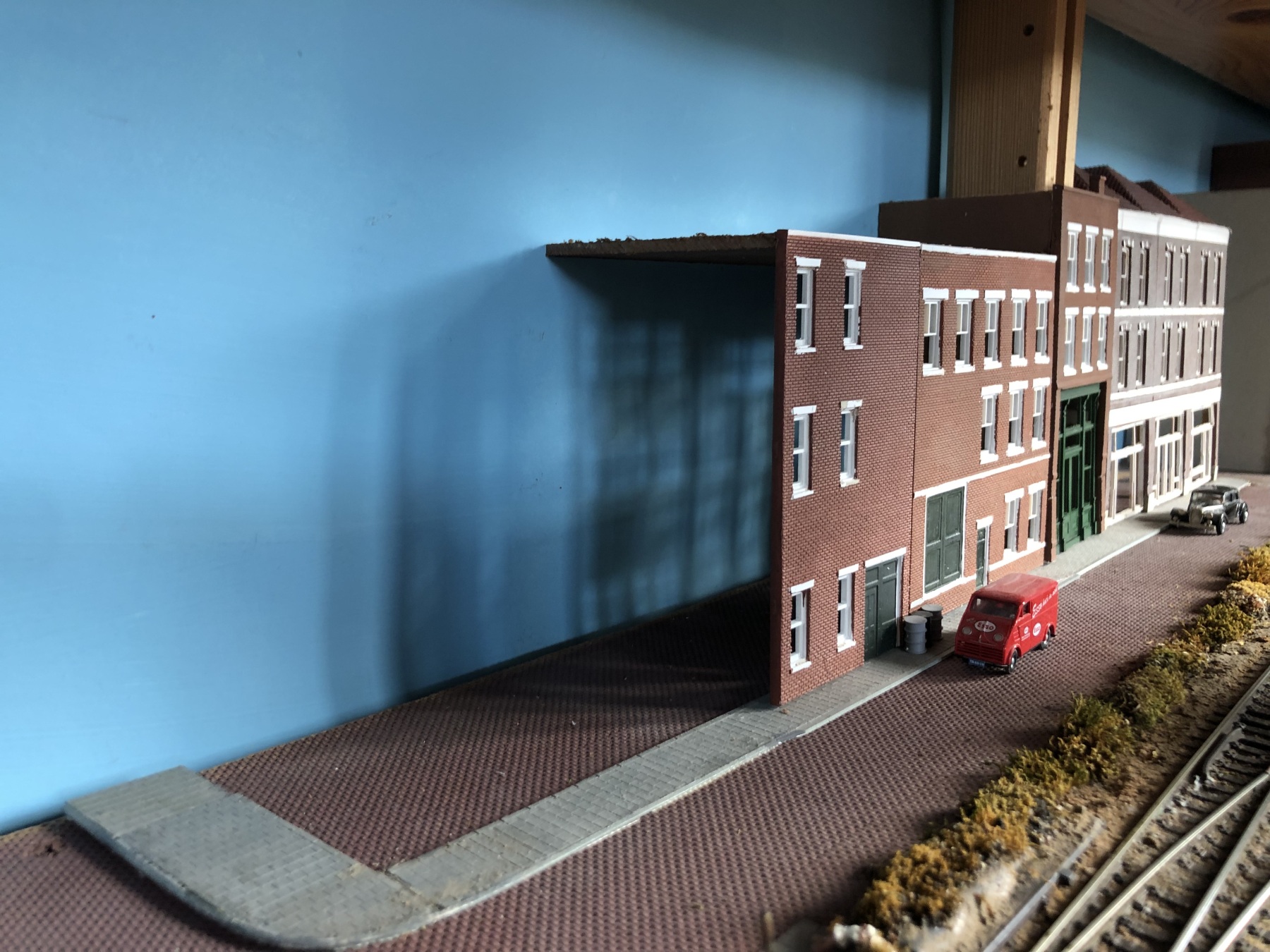 Als je er nog een schuin dak op gaat zetten, kan je n.m.b.m. beter een strakke, brede dakgoot fabriceren van styreen. Kijk maar eens naar de gebouwen op de foto van Arjen52 (Hillesluis).