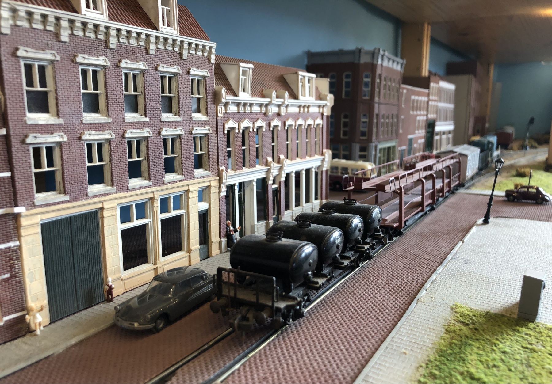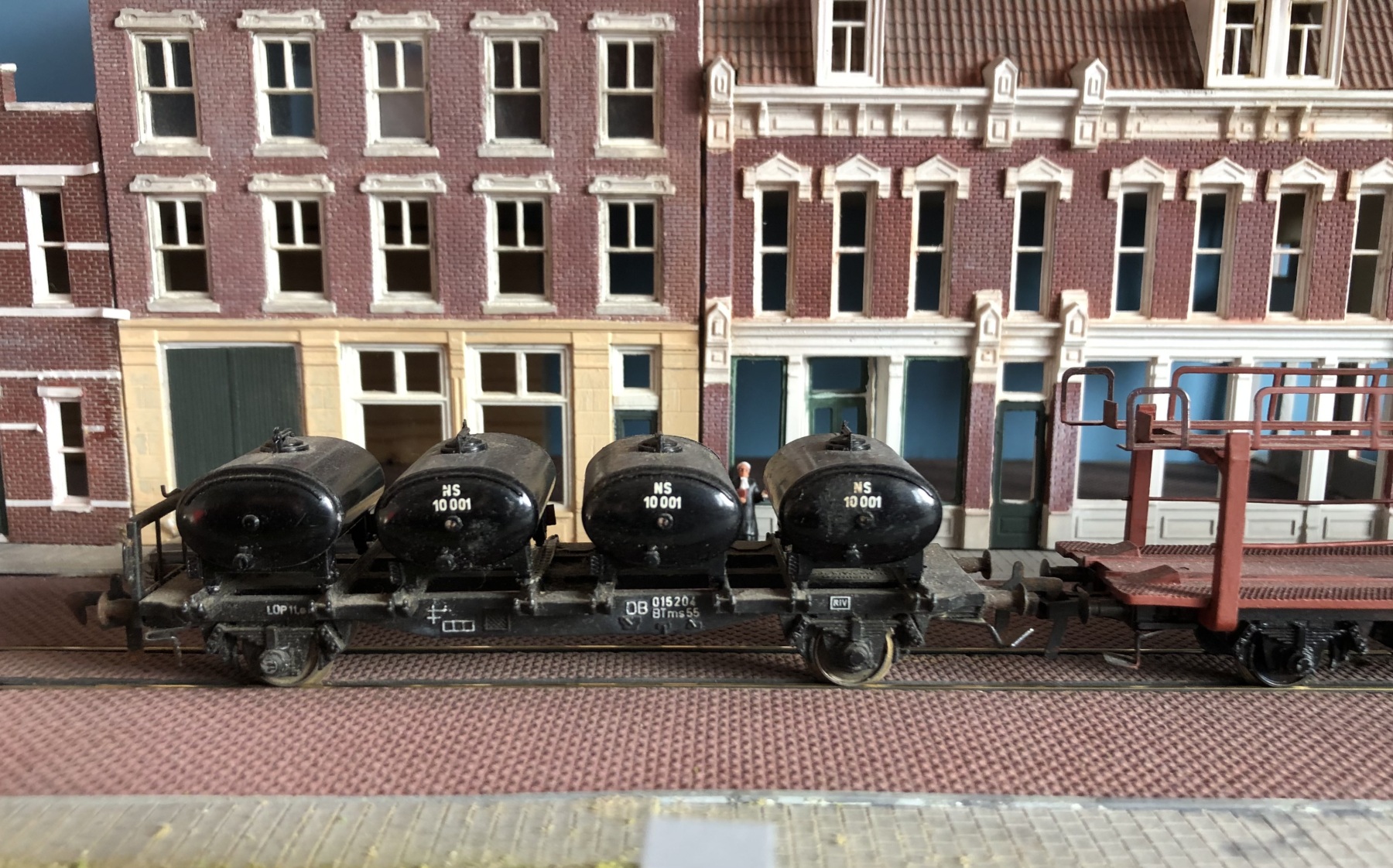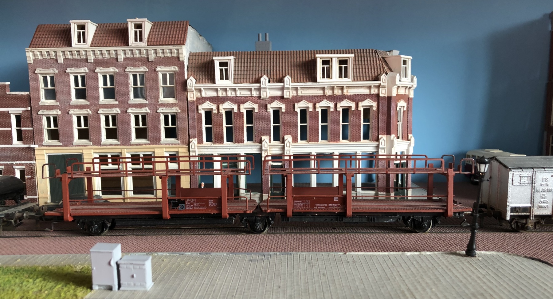Een heel korte trein - de Italiaanse F-wagen is van Fleischmann.Geïnspireerd door deze foto gemaakt te Oosterbeek-Laag 1956