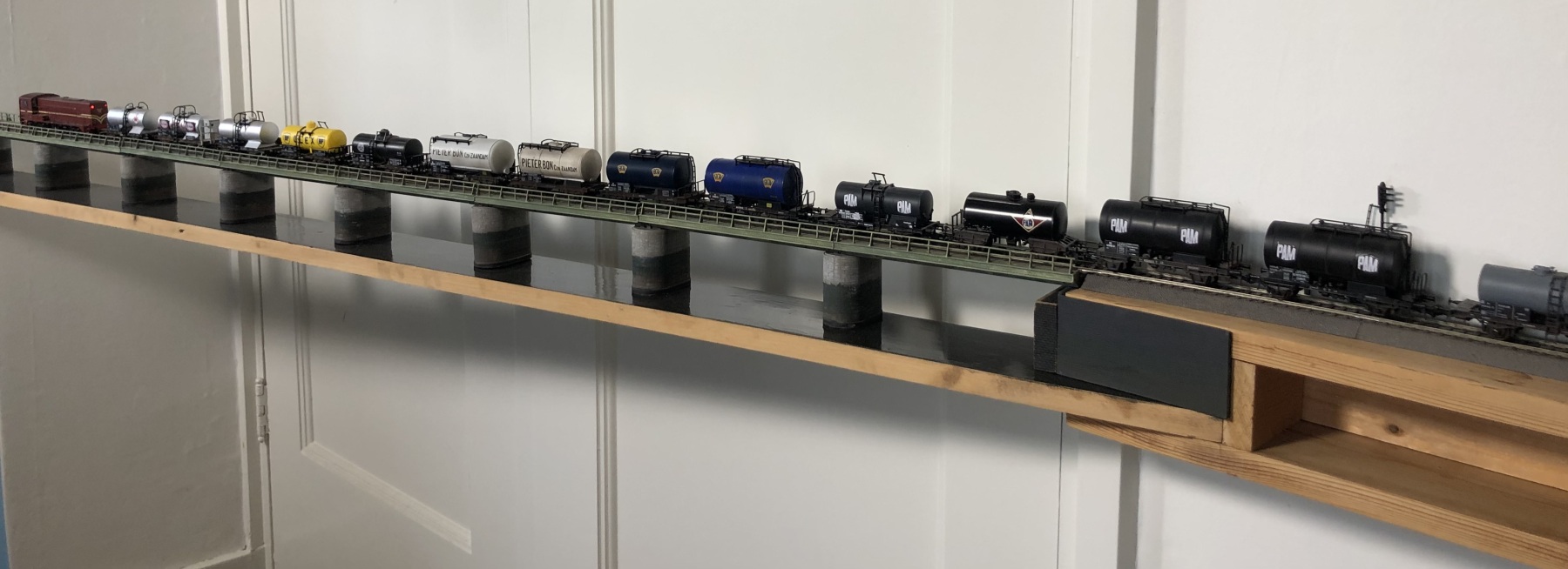 Ja, het blijft leuk, zo'n lange rij met ketelwagens.