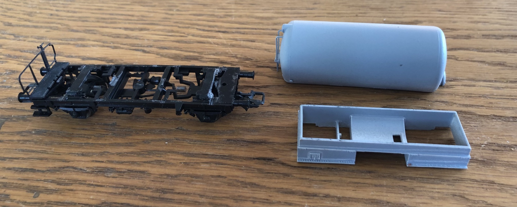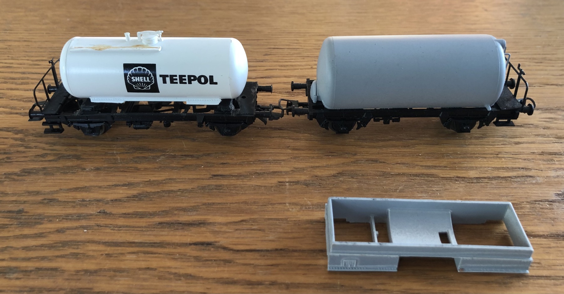 Overigens ben ik van plan de ketel te ruilen met de Teepol ketel van Liliput. Daar heb ik de keteldragers van verwijderd, omdat daardoor de ketel zo onnatuurlijk hoog kwam te staan. Wat het meest realistische is blijft de vraag. Feit is dat de modelspoorfabrikanten veel fantasie hebben als het gaat om ketelwagens. Dus ik neem ook graag enige vrijheid als het hierom gaat.