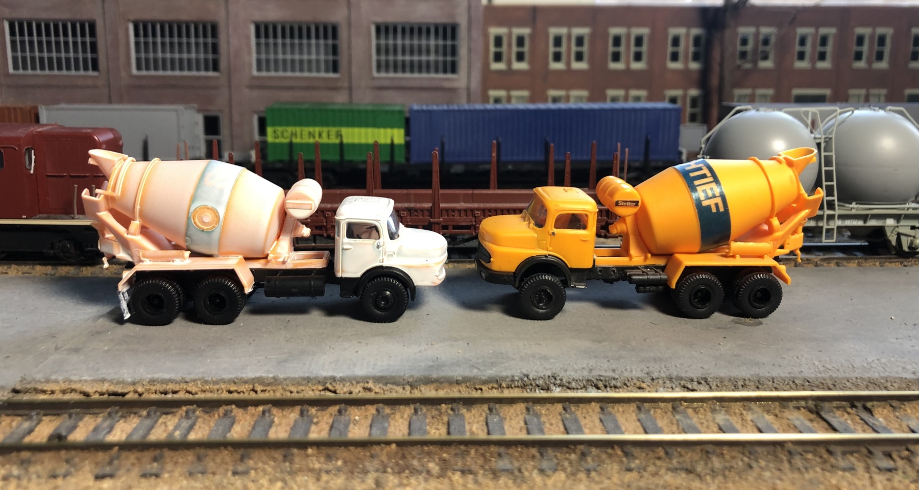Wat meer bij eind jaren 60 past dan in 1955-1956 is de Mercedes betonmixer waar ik er twee van had liggen.