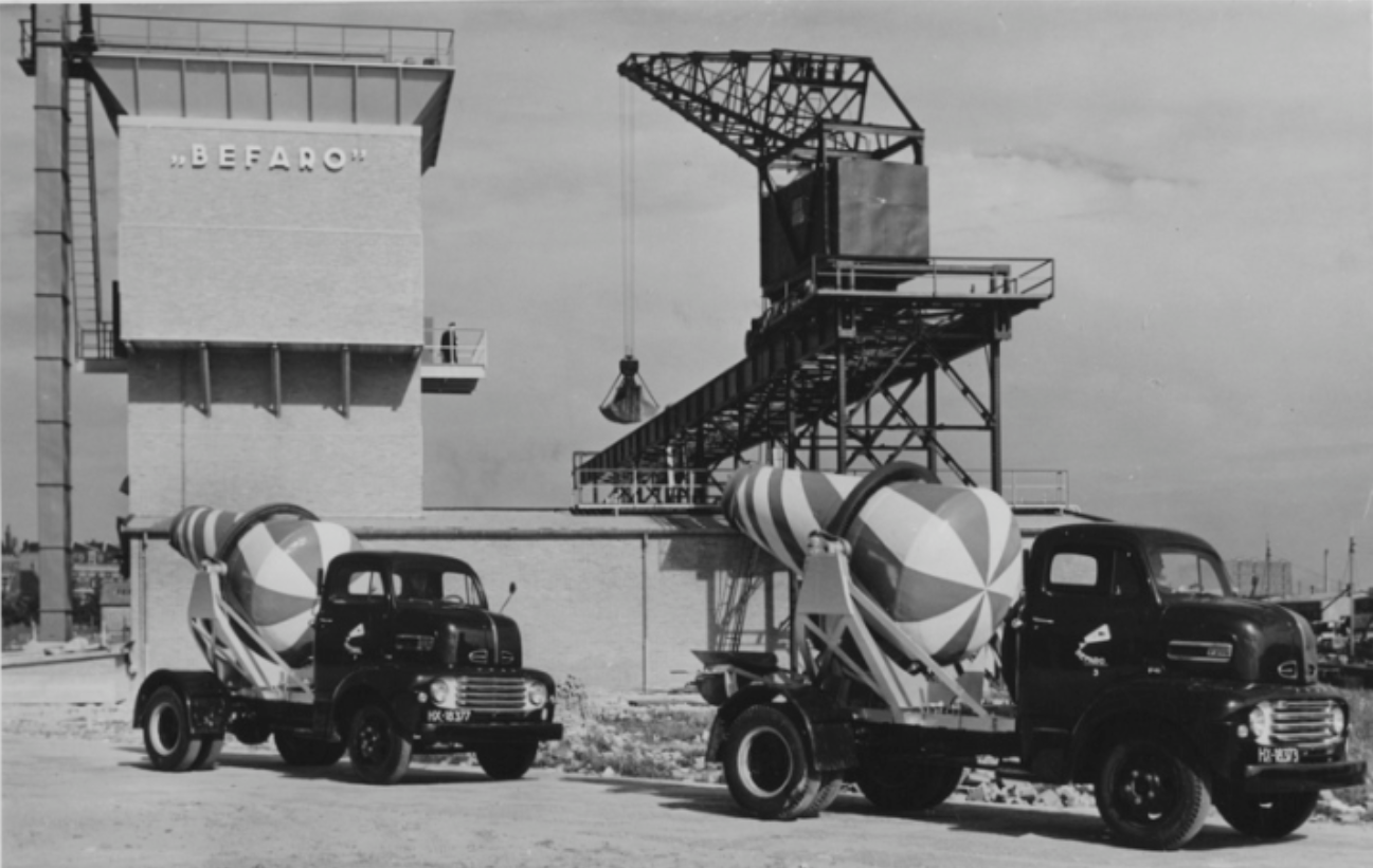 Dat groen/wit is nog heel lang kenmerkend geweest voor betonmixers. Later gecombineerd met geel.
