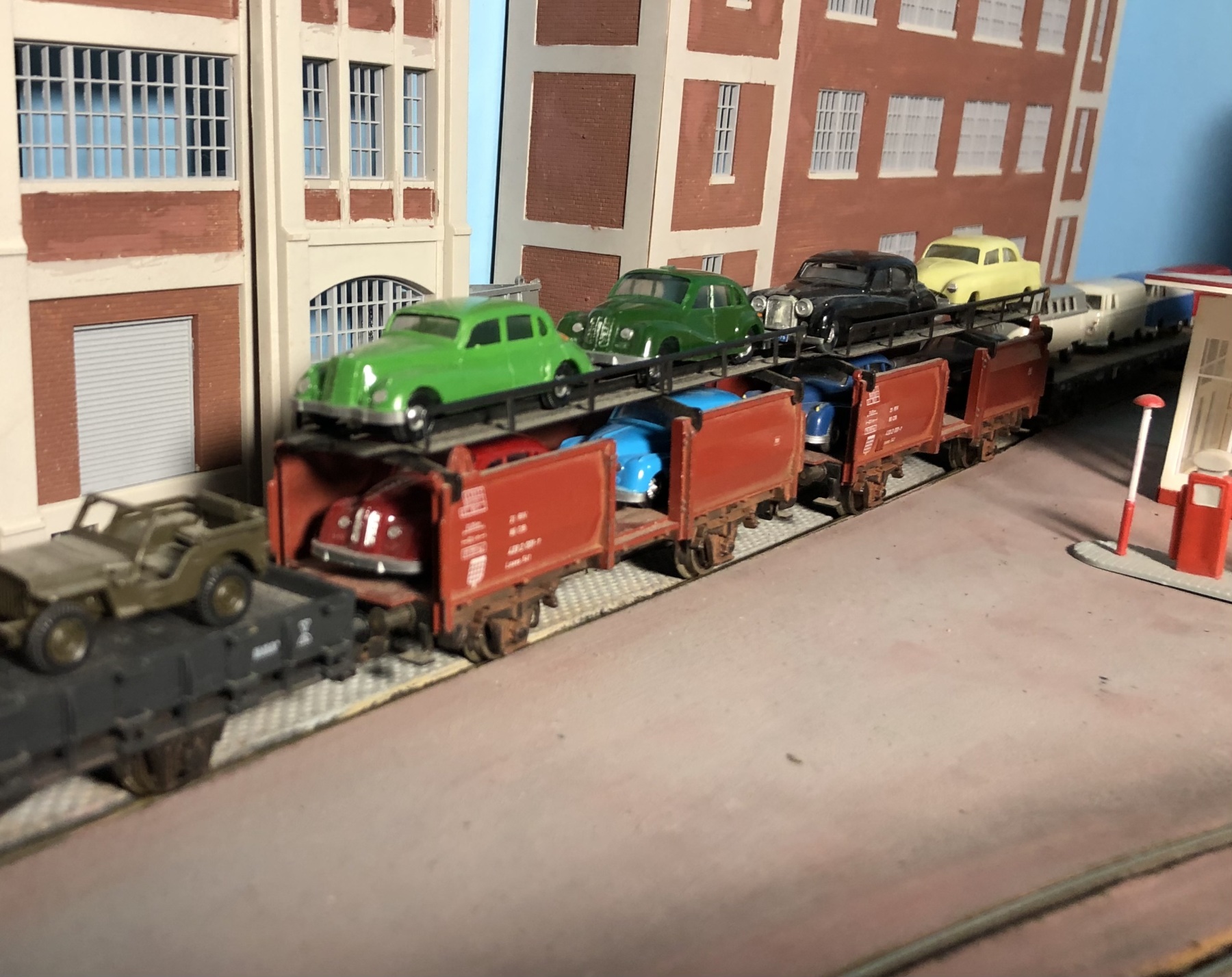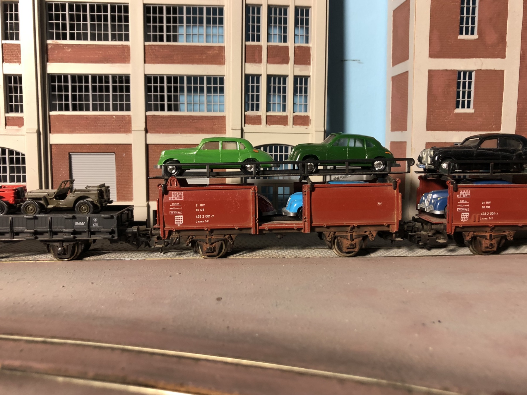 Een ensemble van platte wagen, rongenwagens, verbouwde open wagens en nieuwbouwwagen