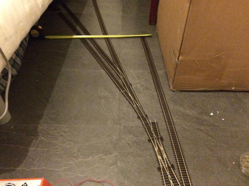 ik kan echt niet stil zitten, vandaag meteen maar wat rails gelegd om een idee te krijgen hoe het gaat worden. Ligt nog niet vast, maar goed genoeg om een (klein) stukje te rijden.