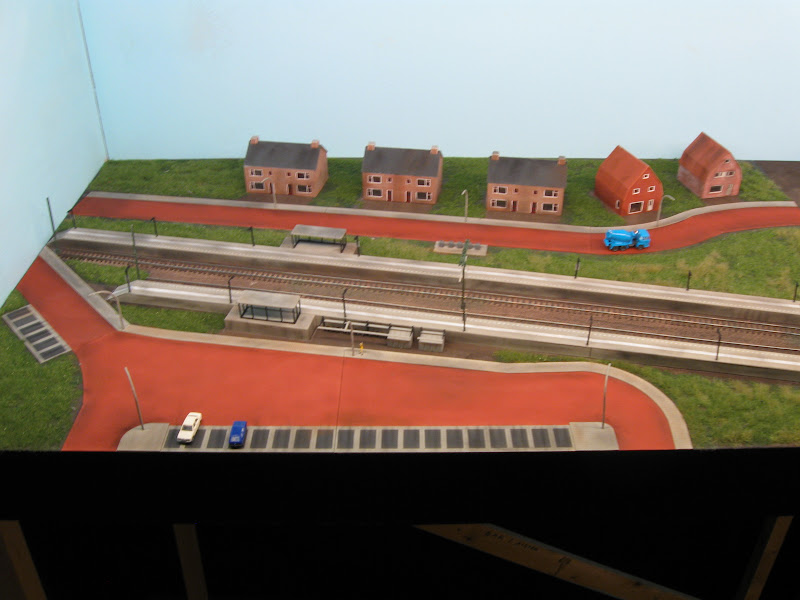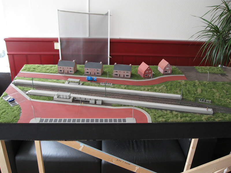 Ik heb het stationsmodule voorzien van een mooi grasmatje. Verder staan de straatlantaarns, relaiskasten en de ondergrondse afvalcontainers ook op hun plek.