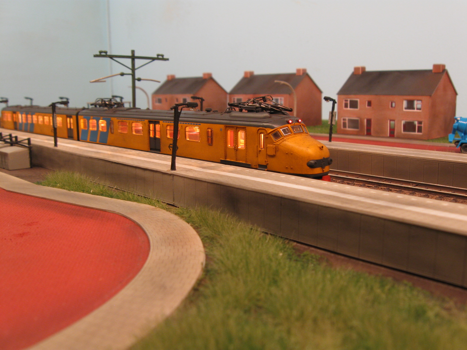 De verlichting is nu af. De seinen moet ik nog wat bijschilderen vanwege wat lichtlekkage. De seinen worden via een schakelaar handmatig bediend.