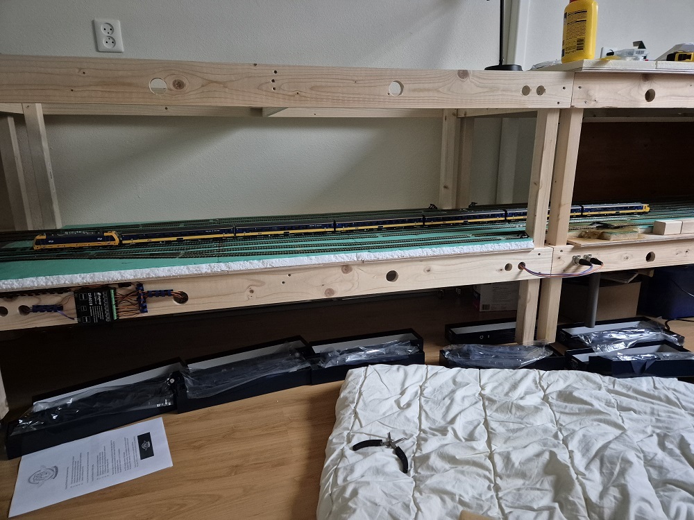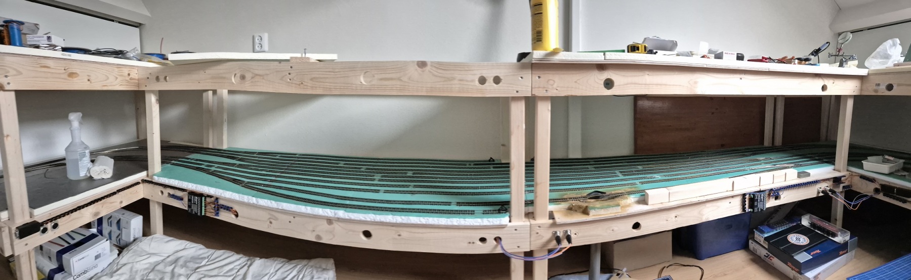 En er is weer een stuk schaduwstation klaar. Omdat we in deze kast minder hoeven te zijn heb ik ervoor gekozen om de modules die ik eerst vast wilde maken toch gewoon door te laten lopen als 1 module.