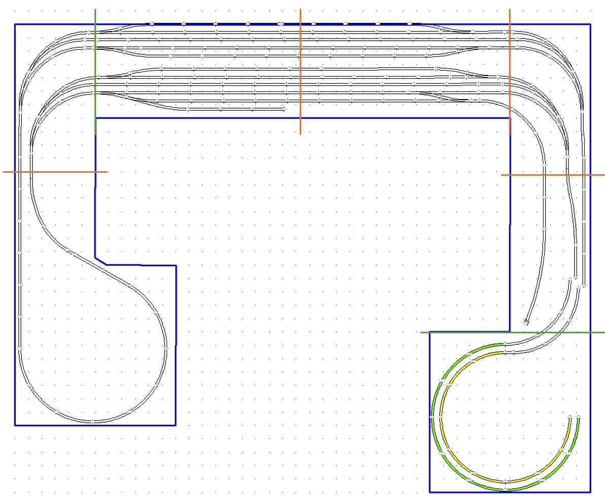 Onderstaand in de plaatjes waar nu de knippen zijn gemaakt. Oranje is niet alleen een knip in onderbouw, maar ook in elektra en door geslepen rails op de overgangen.