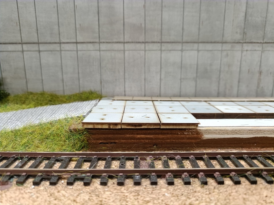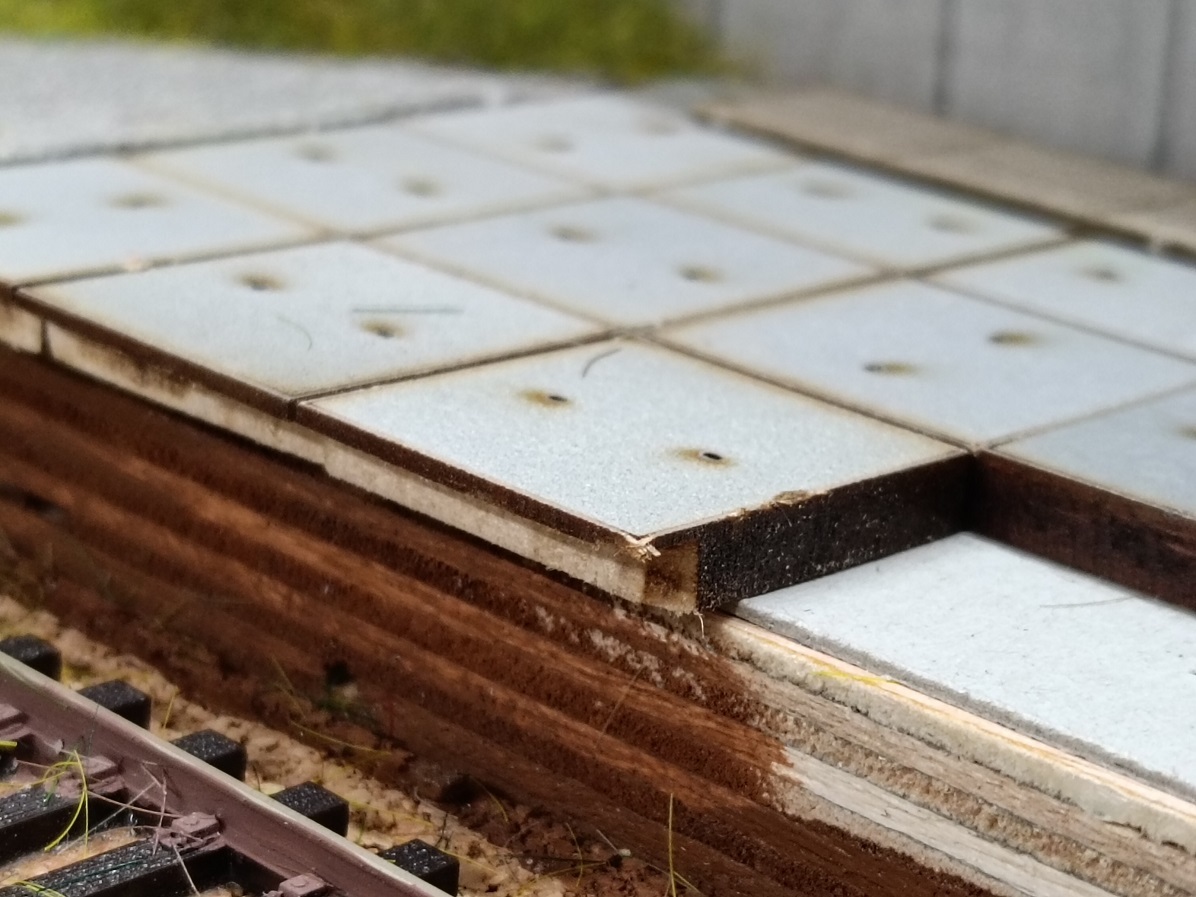Duidelijk te zien dat er een hoekje uitgefreesd is om de randen van de stelconplaten wat realistischer te laten lijken.