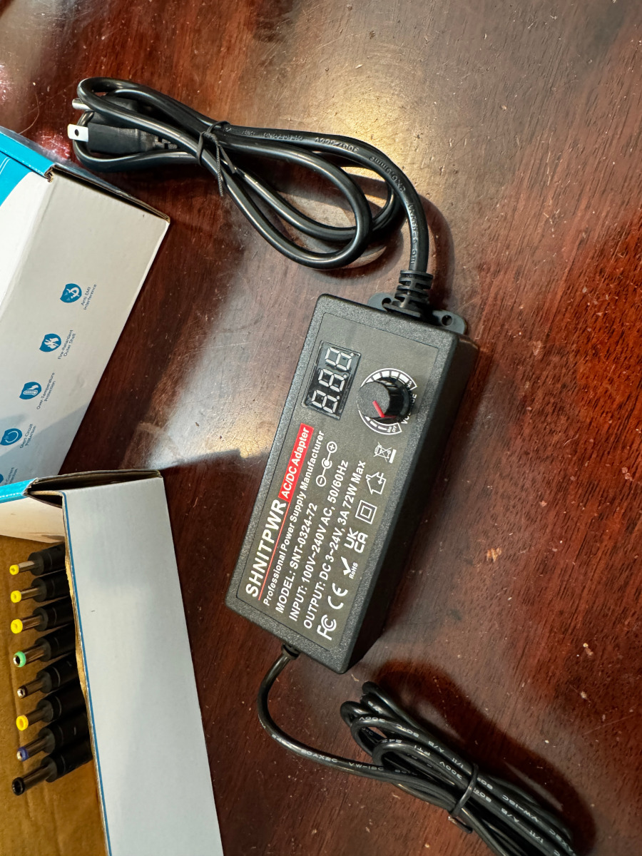 Nieuw plan van aanpak: alle verlichting, met name LED, gaan op een nieuwe DC power supply, een variabele, om te zien hoe laag we de spanning kunnen houden voordat het uitgaat.