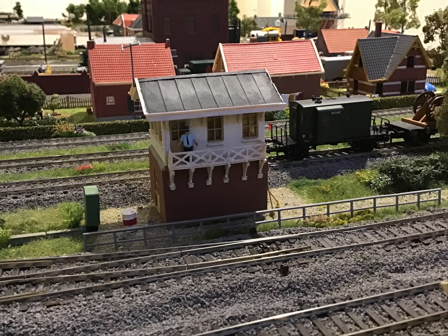 Ik had eerst nog het idee om nog een spoor aan de voorkant van de loods te maken maar daarvoor moest de hele laad en los weg op de schop en dat was me te veel werk.