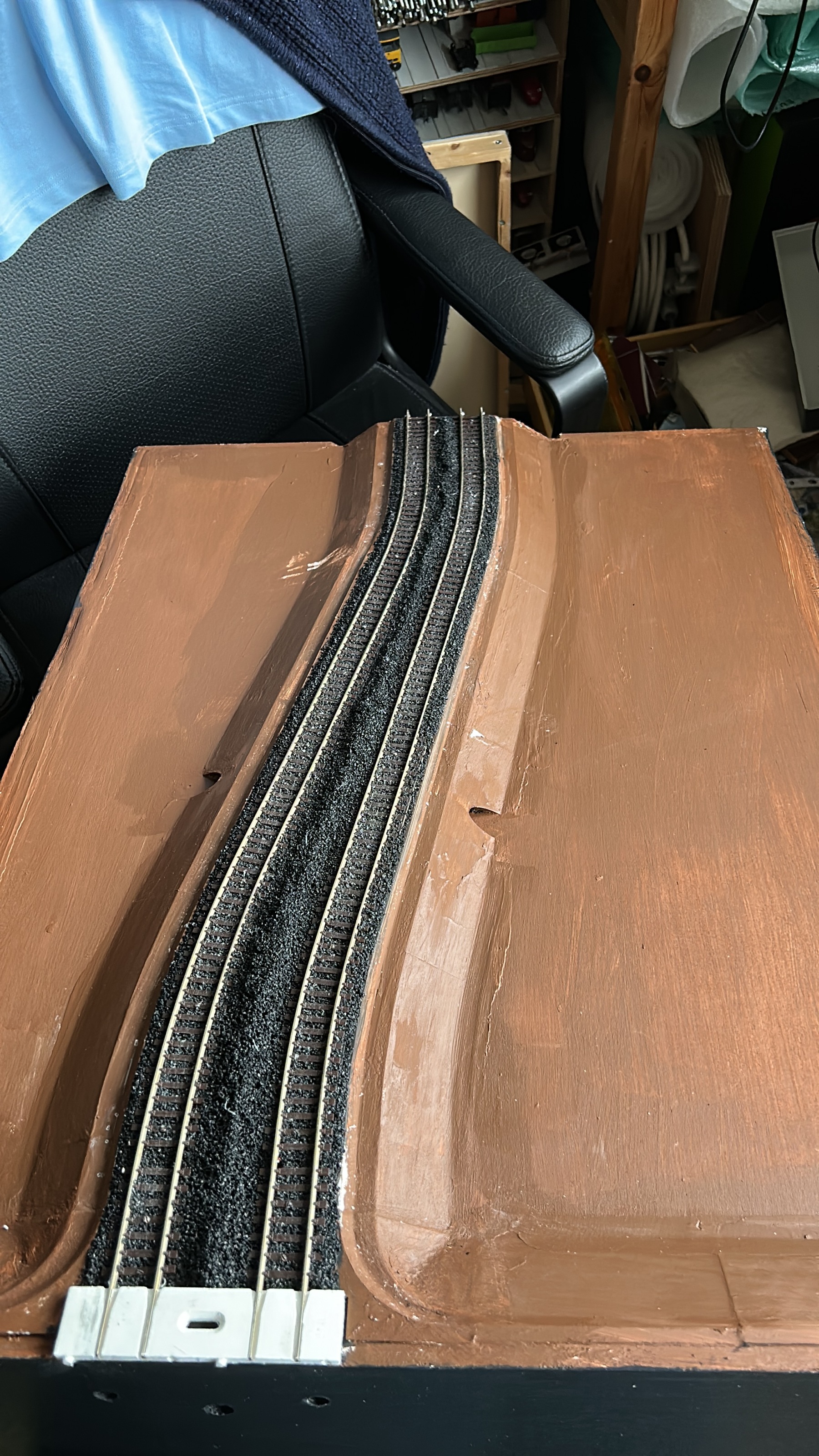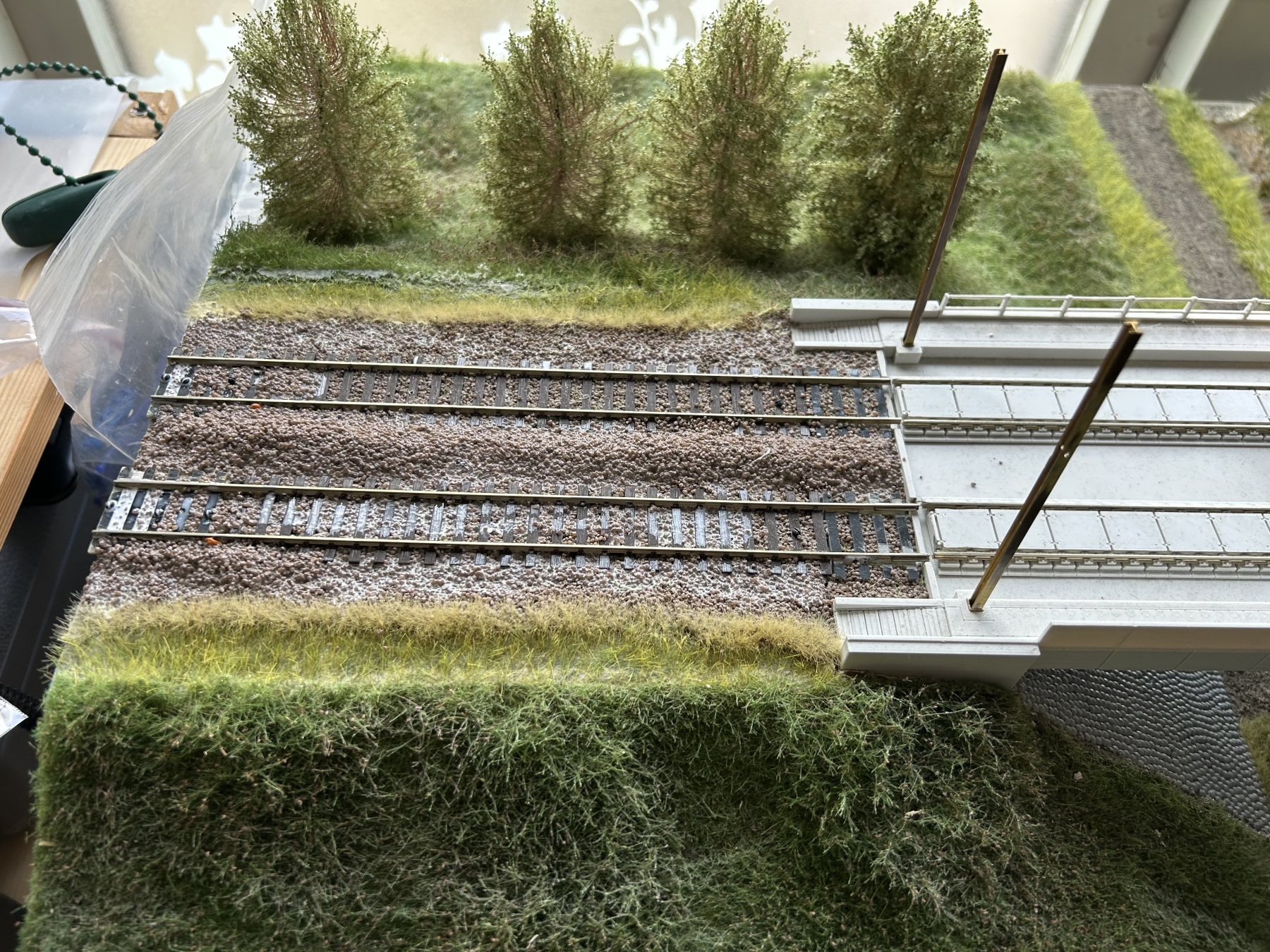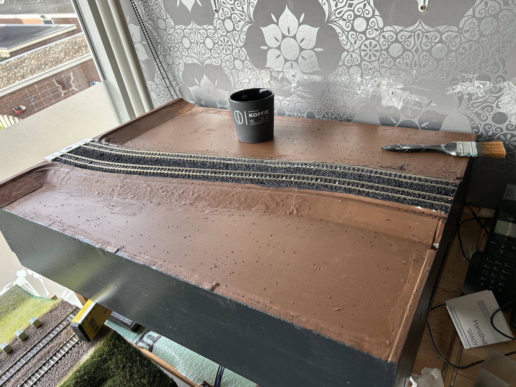 Ook had ik nog geen duidelijke scheiding tussen de beide sporen, daar ligt nu ook een lang gerekt hoopje ballast tussen.
