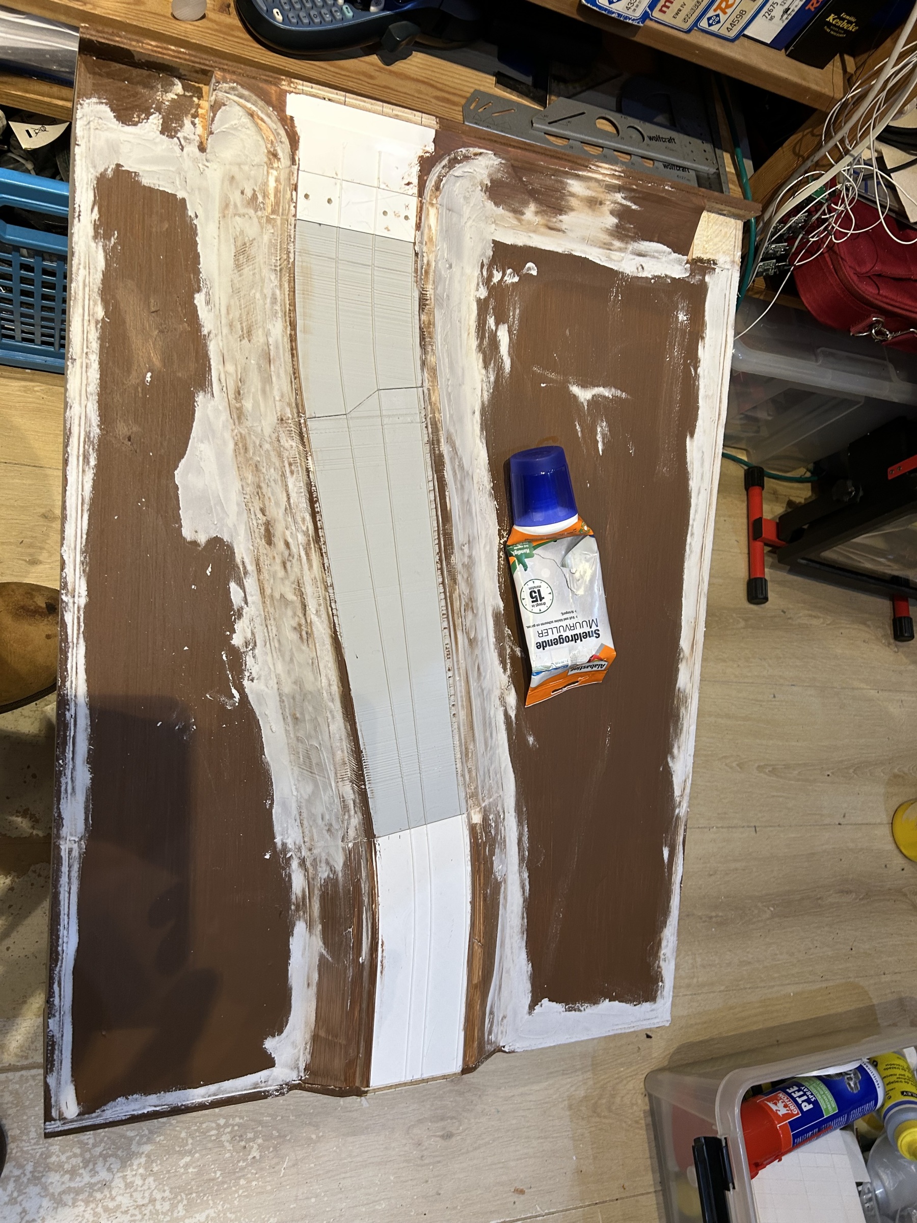 Als ik dan toch met verdunde houtlijm en ontspiegeld met een drupje afwasmiddel bezig ben, kan de eigen modulebakken niet achter blijven.
