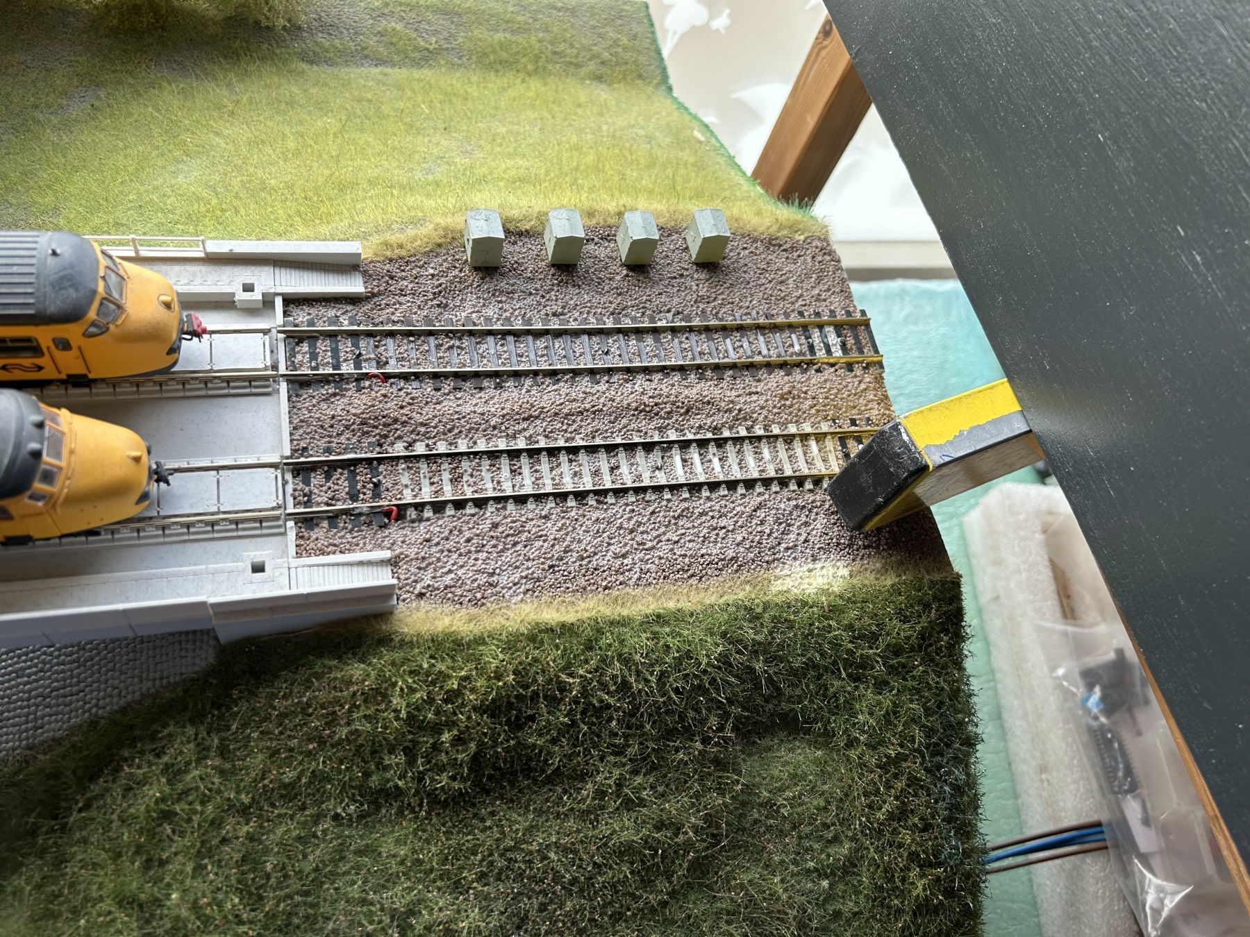 2 koppelbakken voorzien van ballast op het spoorbed.