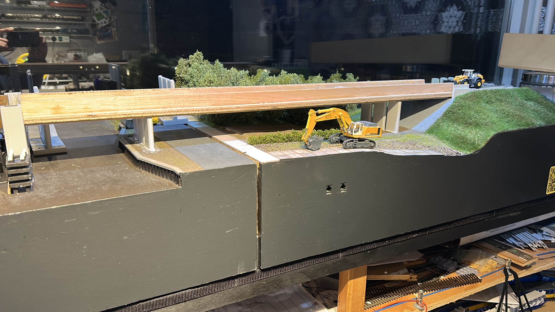 Dan worden de mallen gebruikt als ondergrond om de brug op te gaan bouwen, dan komt later het landschap er overheen/langs op.