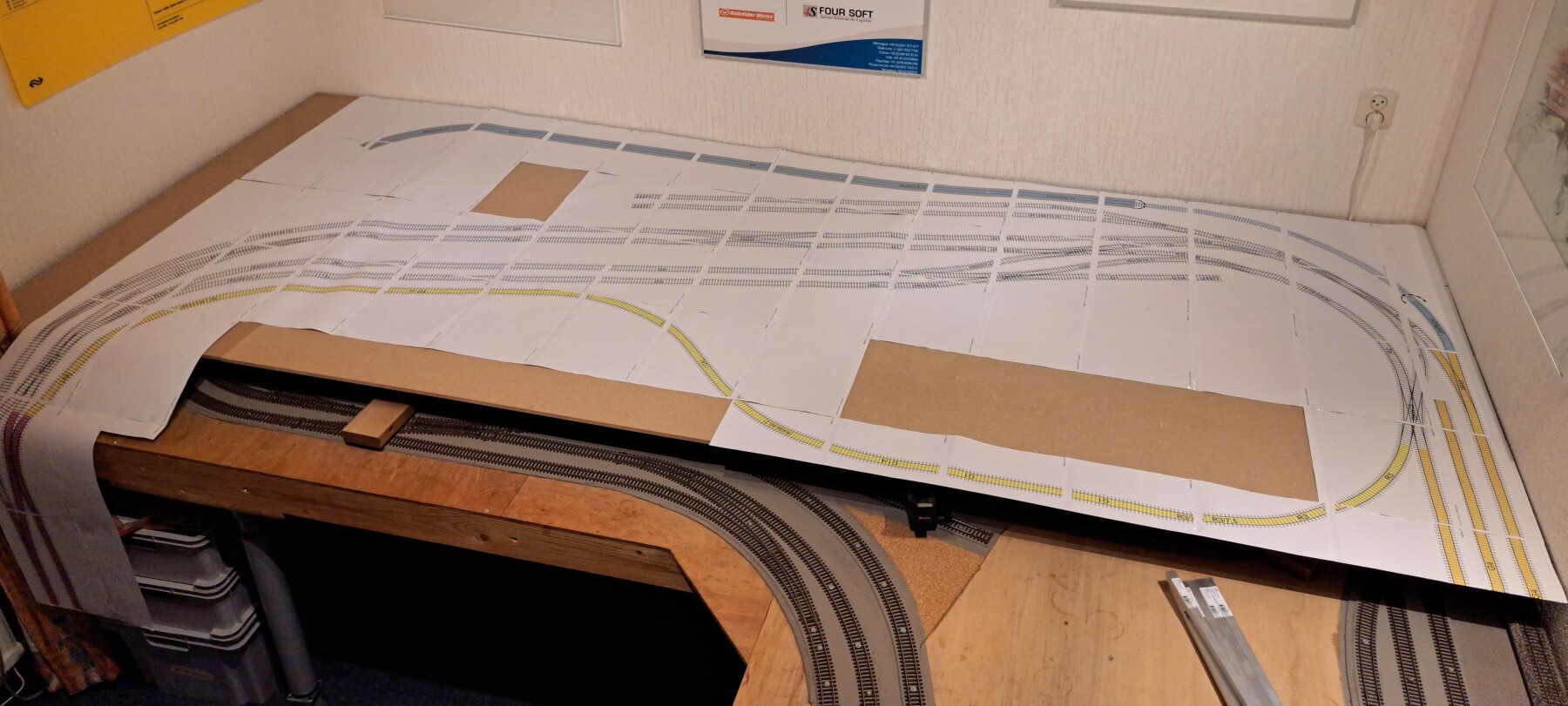 Ik zie soms op het forum dat de rails er gedeeltelijk ligt en voor de helft met ballast, maar dat er ook al wegen, scenery en zo aanwezig is...