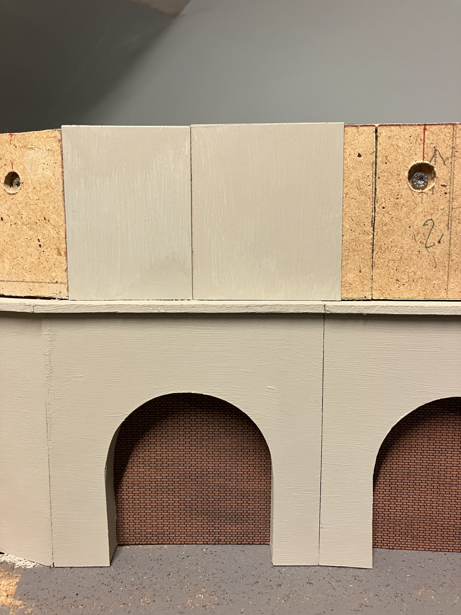 En het bovenste gedeelte is opgedikt met een tweede laag hardboard. Dit is om dikte te suggereren. De schroeven van de eerste laag zijn uitgespaard en vallen binnen het vlak van de tweede laag.