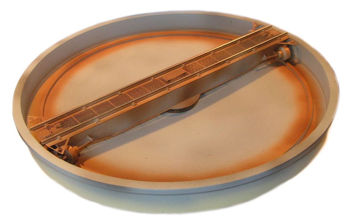 . Dit zijn 20 meter draaischijven uit de Länderbahn tijd. Bij zo'n 20 meter schijf is de brug 22 cm lang. De totale diameter is zo te zien 23,5 cm. Die kleine Fleischmann schijf heeft een totale diameter van 25,7 cm. Er is in mijn geval dus nog aan alle kanten