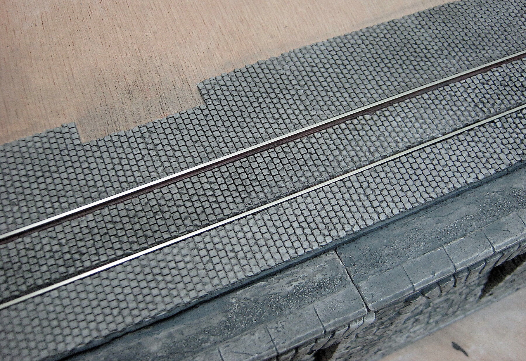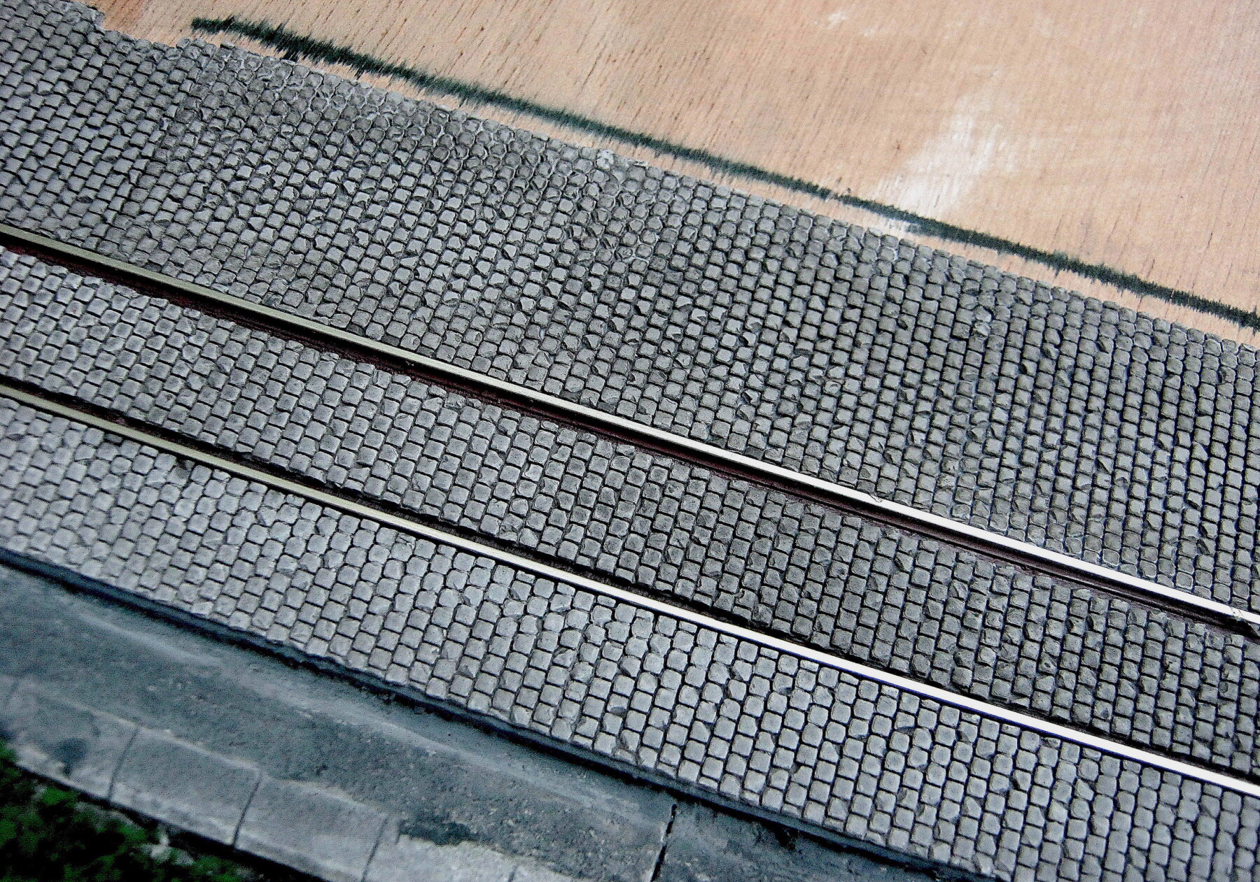 Viel me wel op dat de straat tussen de rails relatief laag lijkt te liggen. Net alsof links en rechts aansluitend is bovenkant spoorstaaf en in het midden lager. Meer waarheidsgetrouw zou zelfde hoogte zijn.