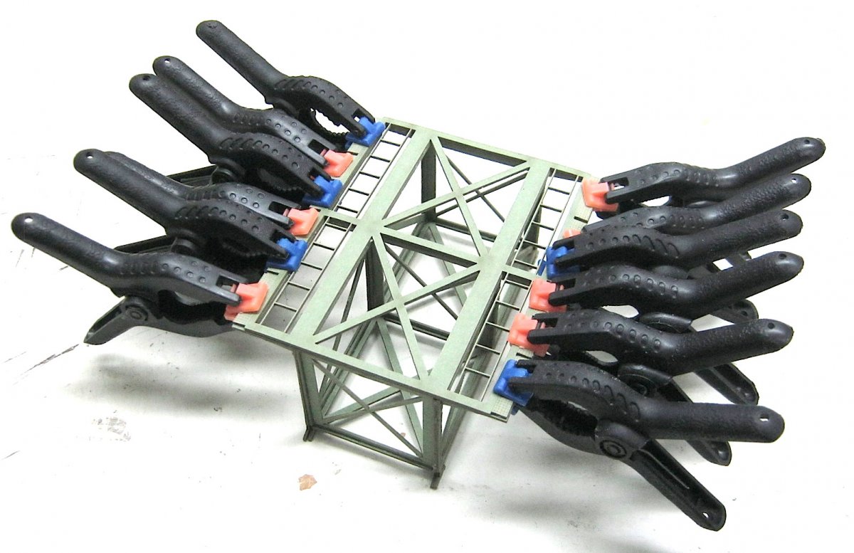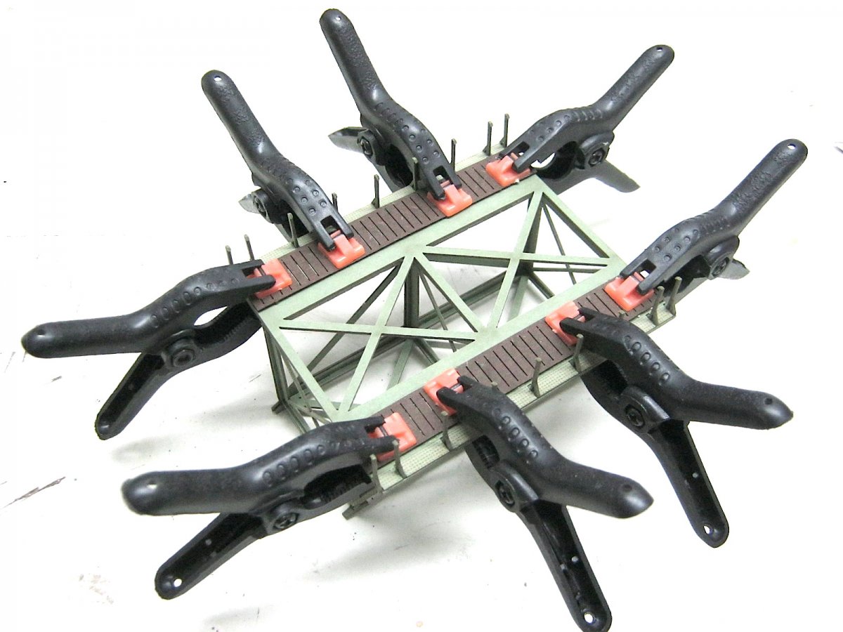 Het kromtrekken lag toch wel aan iets te veel lijm. Het was voor mij gisteren ook een nieuwe ervaring en het is behalve deze beginnersfout verder goed gegaan. Zo goed dat mijn vingers weer jeuken om een grote brug te gaan aanpakken