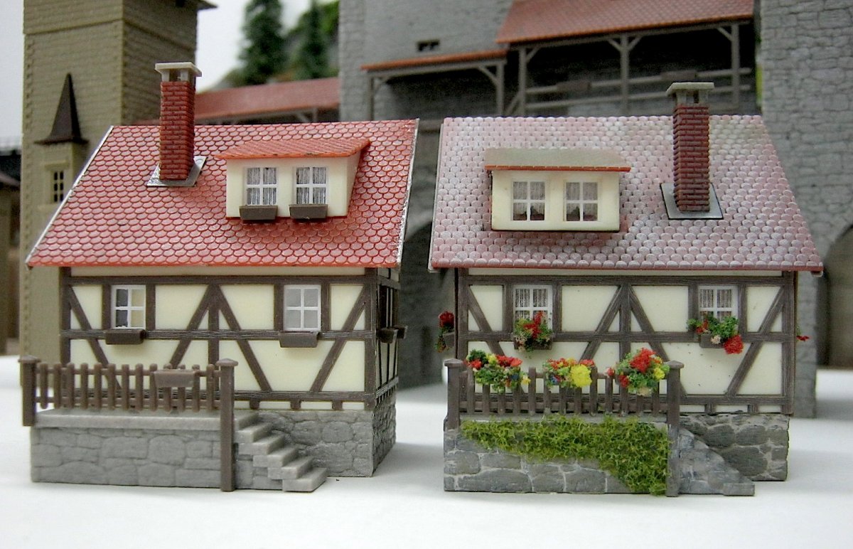 Ik laat de dakgoten en regenpijpen maar voor wat het is. Ga ze dus niet plaatsen. Volgens mij wordt het alleen maar onrealistischer. Het zijn gewoon heel oude bouwwerken.