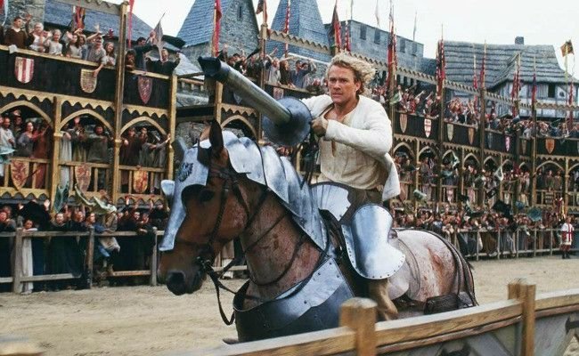 En Hans bedoelt, denk ik, dat ik moet meedoen aan ridderspelen om een jonkvrouw te winnen.
