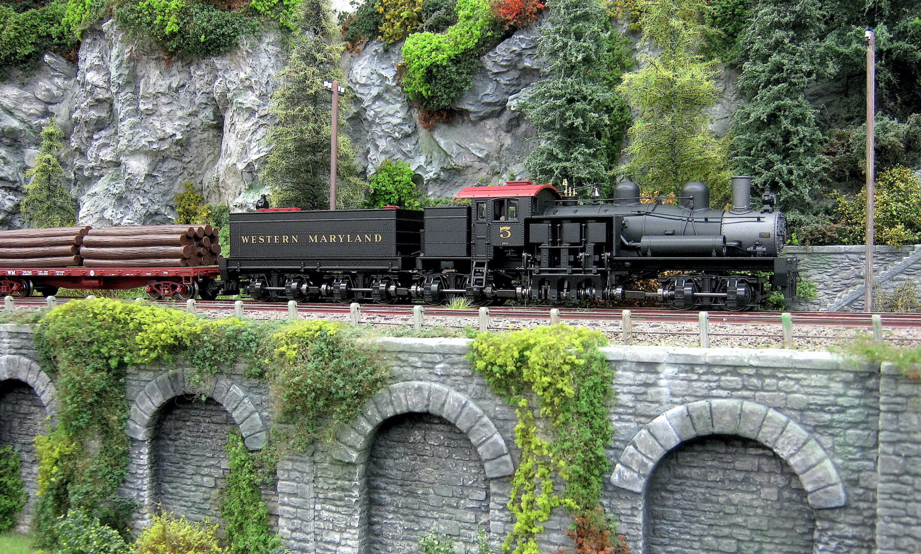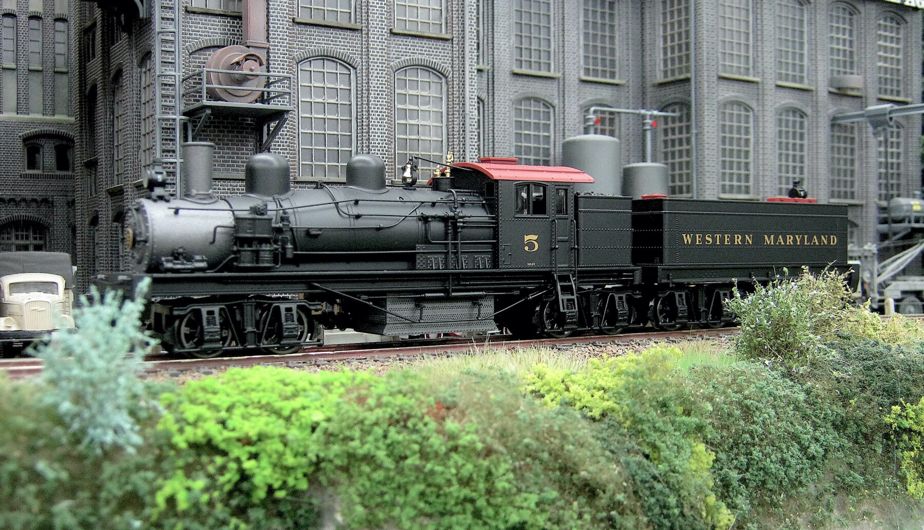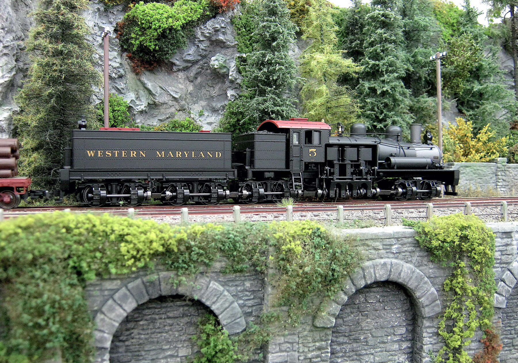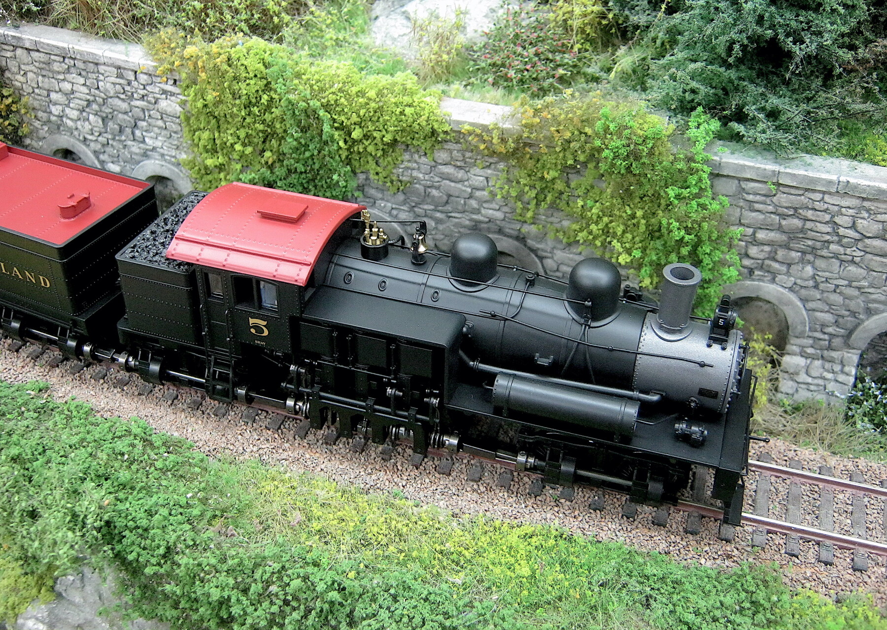 Dit is onmiskenbaar de Amerikaanse stoomlocomotief Shay, een model van Märklin (# 38700).