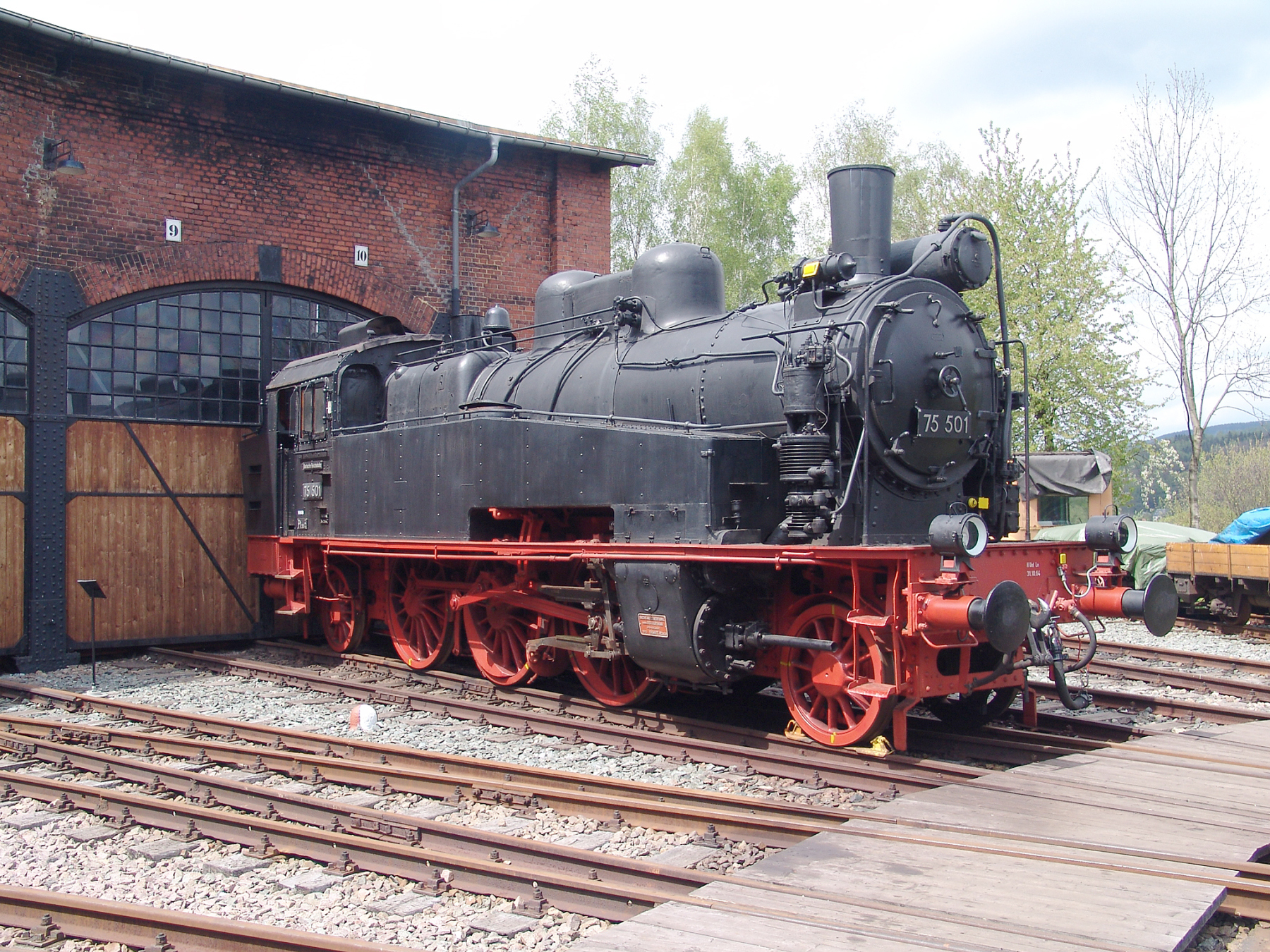 De BR 75.5 die er nog waren na WWII, waren alle bij de DR opgenomen. Typisch bij de BR 75.5 was de plaats van de "Vorwärmer": op de ketel, naast de schoorsteen. Het model op de foto's is, voor zover ik het kan beoordelen, een DR versie. Hier meer info over die BR 75.5: