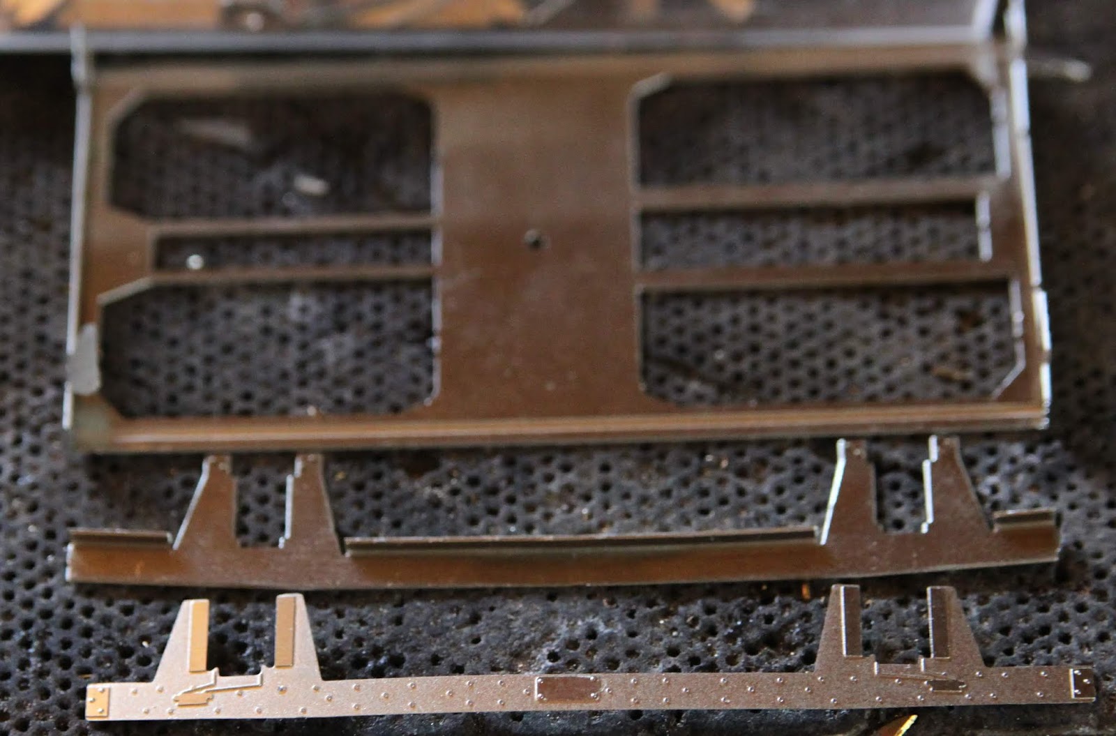 Zoals Peter al beschreef, moet je goed opletten hoe je alles aan elkaar zet ivm kromtrekken. De enkelvoudige coupéwand is zowat recht en als je de verticale strips aanbrengt wordt die zowat recht. De binnenwand had ik eerst onderaan gesoldeerd...wiebbeldewobbel door vervorming van de vlam. Los dus. Het gaat goed als de binnenwand minimaal aan de bovenkant van de verticale strips wordt gesoldeerd en daarna pas aan de onderkant.