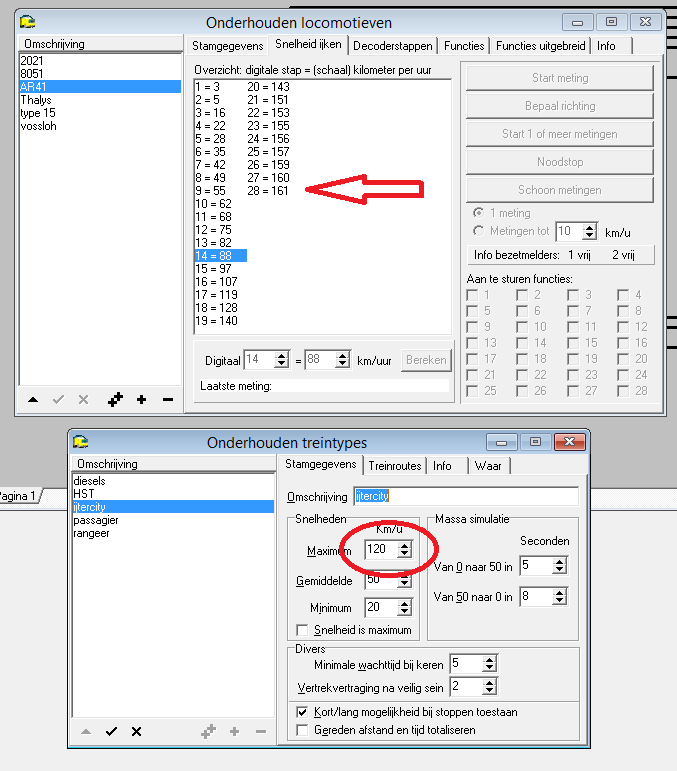 Kees, jou rekenkunst zal wel kloppen, als ik de snelheid in koploper laat uitrekenen kom ik aan top 95km/h dus koploper laat de loc langzamer rijden. Ik ben nu terug de loc aan het ijken, ik zal zien.