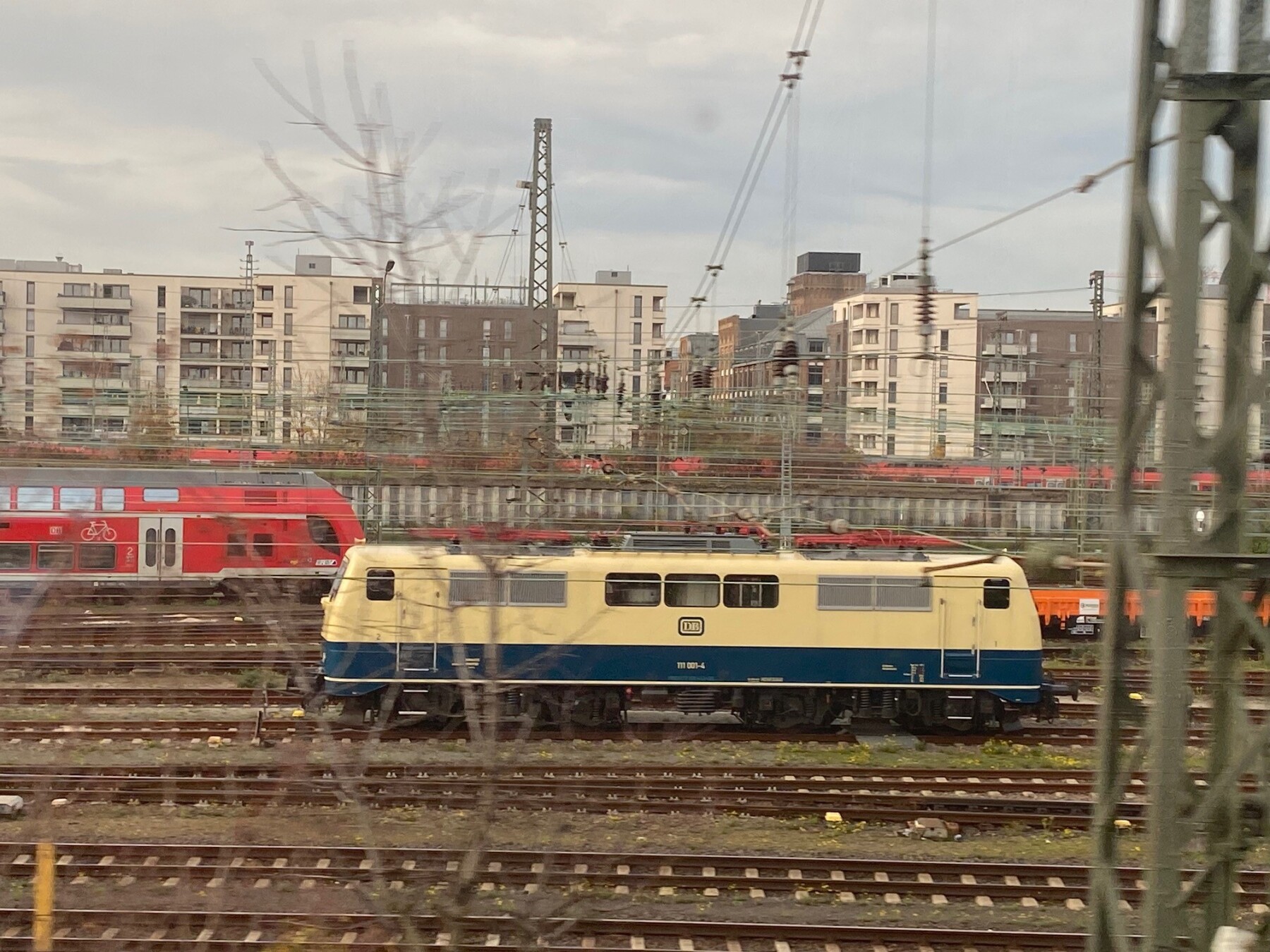 Niet alle lokomotieven waren rood op Frankfurt, als ik het goed zie is deze Oceaan/Blauwe gekleurde lok een museumstuk en de eerste afgeleverde BR111;