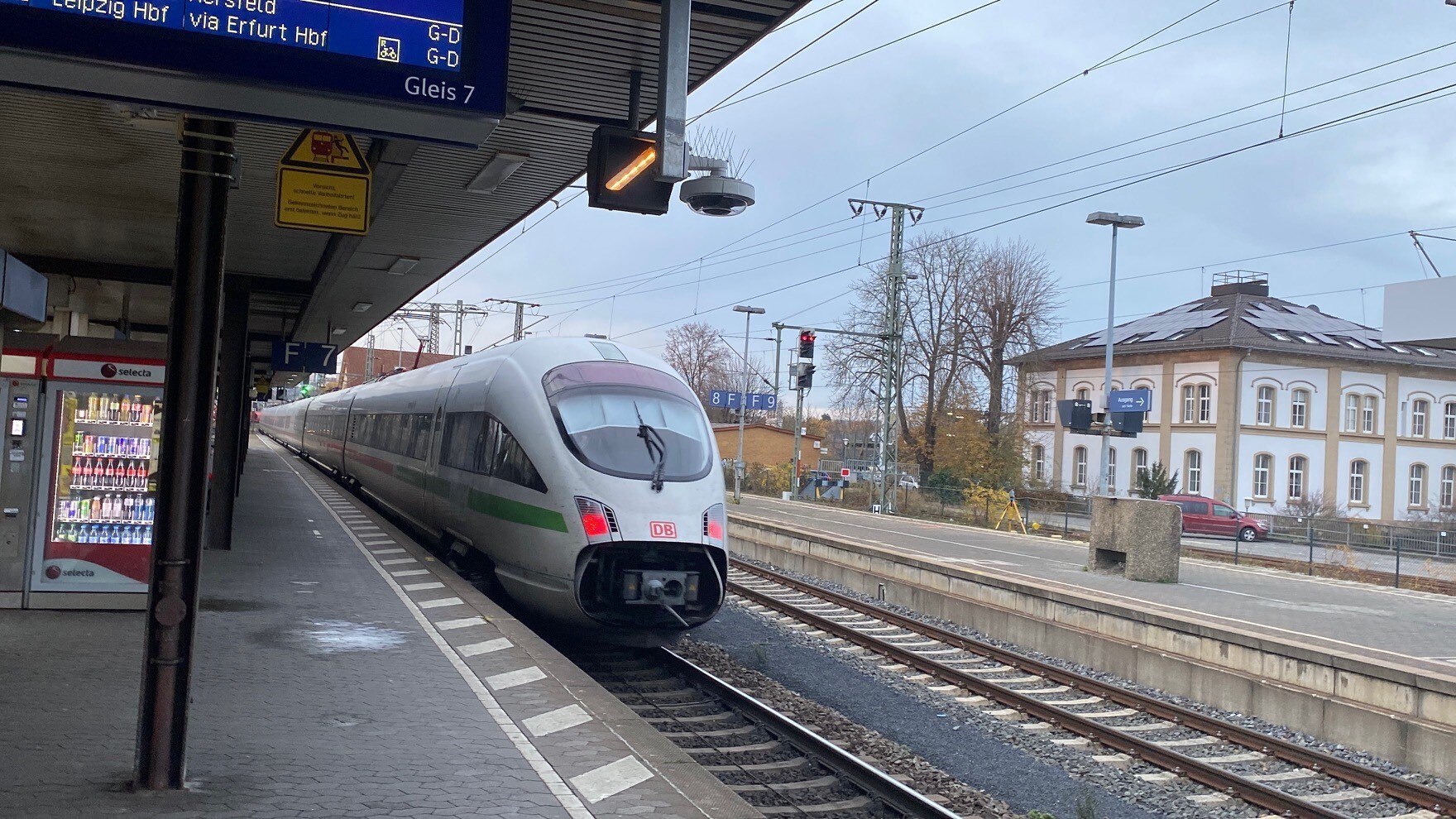 Zoals gezegd maakte de trein waarmee ik Frankfurt binnenreed kop en ging weer door naar oostelijker streken. In Fulda de trein nagekeken op weg naar de bestemming;