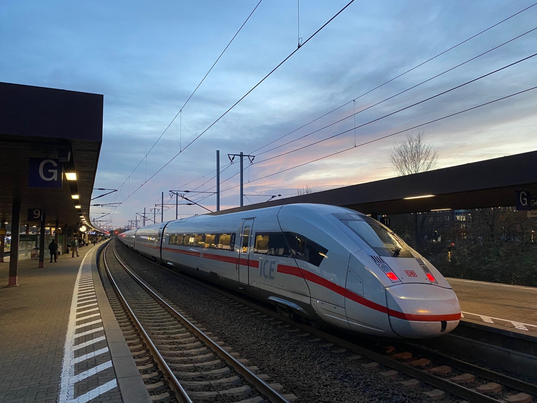 Het was al donker op mijn bestemming, dus de volgende kiek is alweer van gisteren (bij het vallen van de avond). Weer een ICE, maar dan de 412 (wel een indrukwekkende lange slang trouwens).