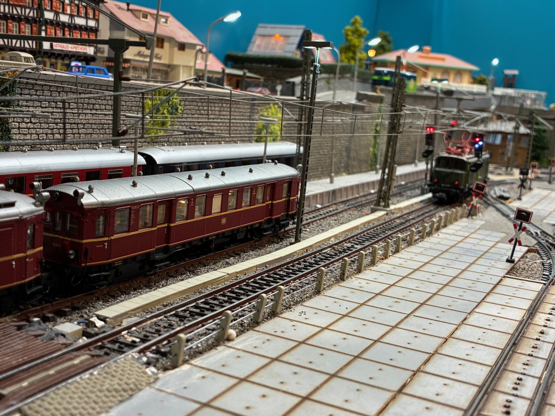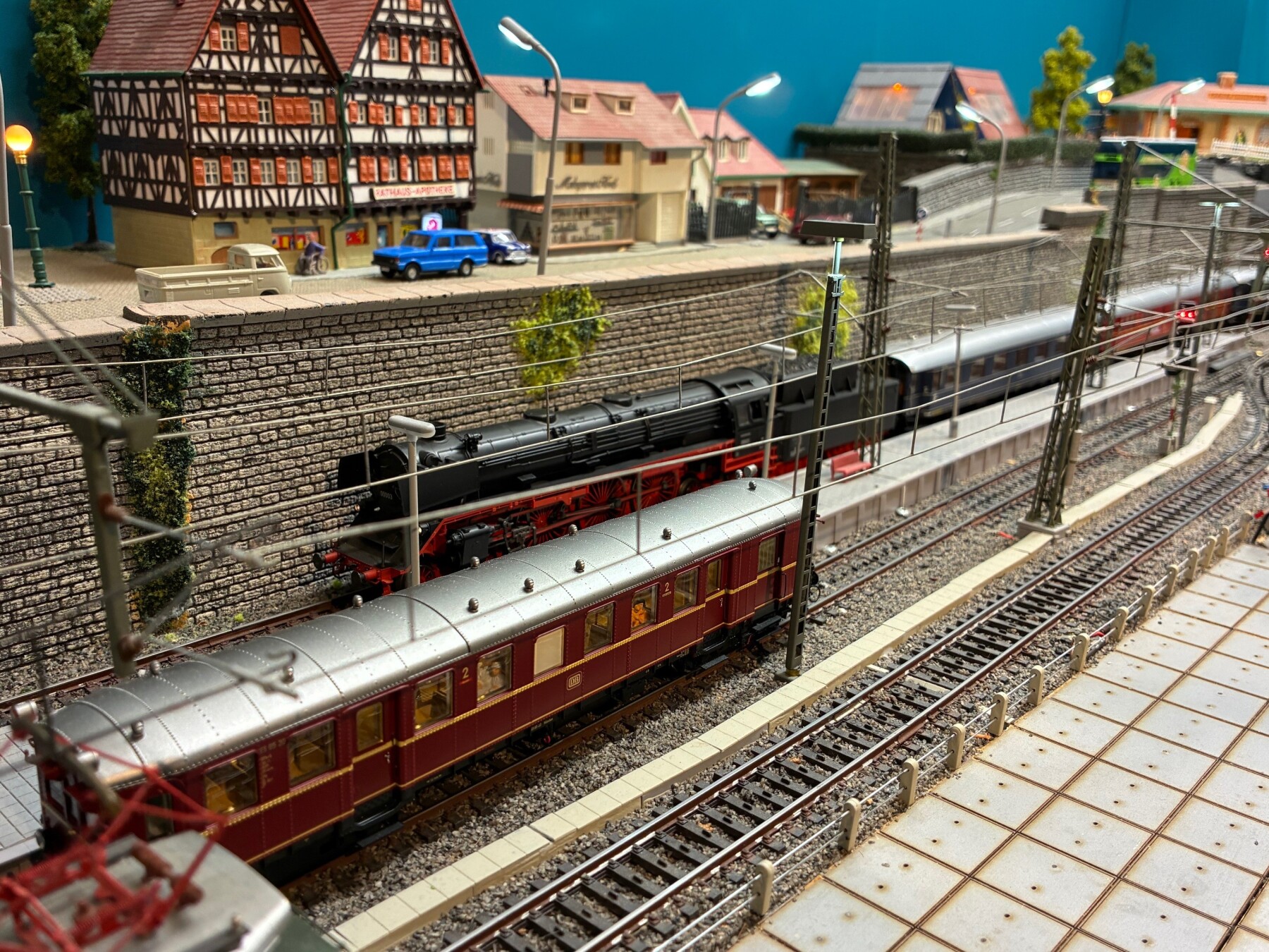 Ter ere daarvan wat "rijfoto's" van de BR 05 met zijn F-zug die binnenloopt in het kopstation. De rit zal voortgezet worden met een E 44 als tractie. De E44 stond al klaar in het station, en krijgt toestemming om te rangeren.