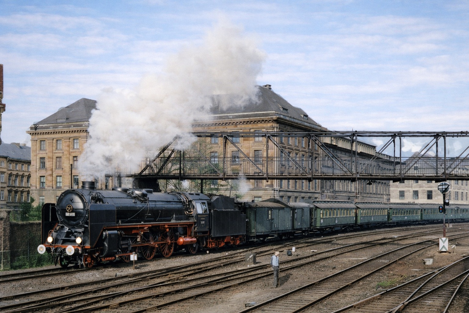 Während ihrer kurzen Einsatzzeit beim Bw Hamm (Westf) erwischte Carl Bellingrodt die 02 006 vor dem D 4 (Berlin Stadtbahn – Köln Hbf) bei der Einfahrt nach Elberfeld Hbf (heute Wuppertal Hbf). Die Lok wurde am 11.07.1941 in 01 239 umgebaut. (1926) Foto: Carl Bellingrodt