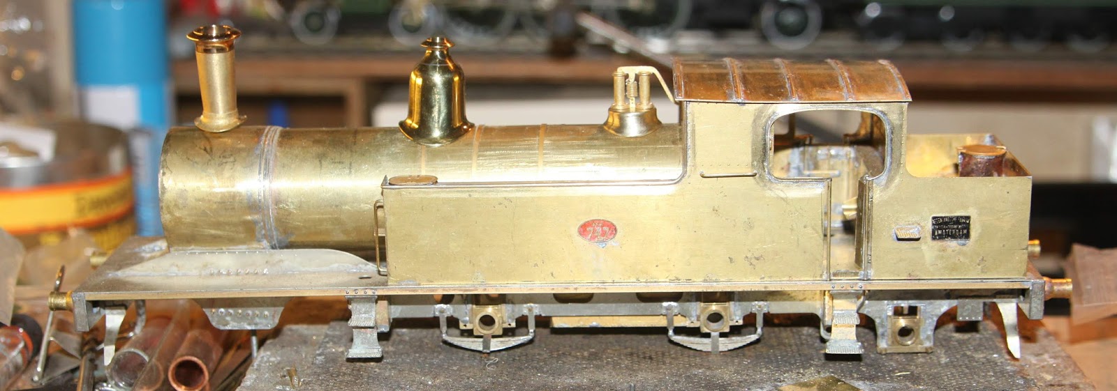 Het aanbrengen van de sierstrip op de watertank is volgens mij het moeilijkste werkje van de hele bouw. Halfrond 1mm kaarsrecht bovenop 0,5 mm plaat én recht. Ik heb het een paar dagen uitgesteld, maar vanmiddag had ik de goede aardstraal gevonden.