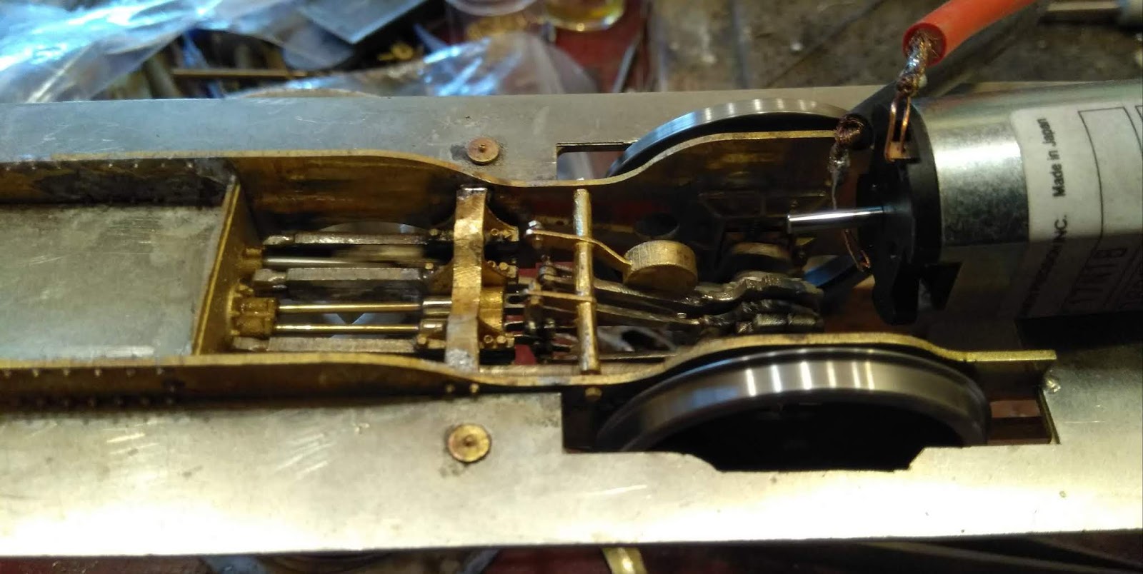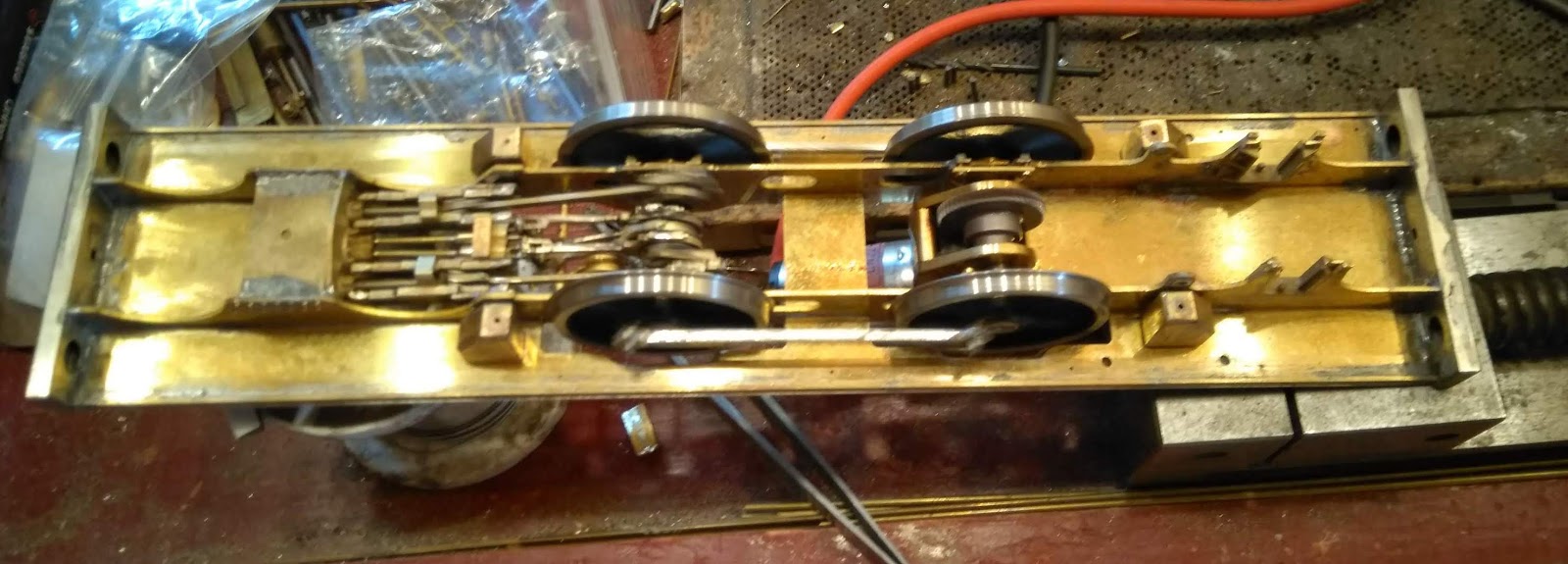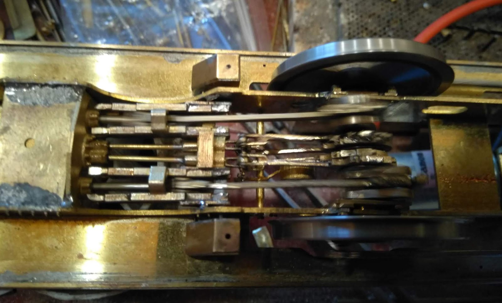 Als ik dit zo zie, verwacht ik niet dat het achterste bogiewiel tegen het binnenliggend drijfwerk gaat komen. Dat wiel komt in het "krapste" stuk van de wissel niet binnen de frameplaten, maar maximaal er net onder.
