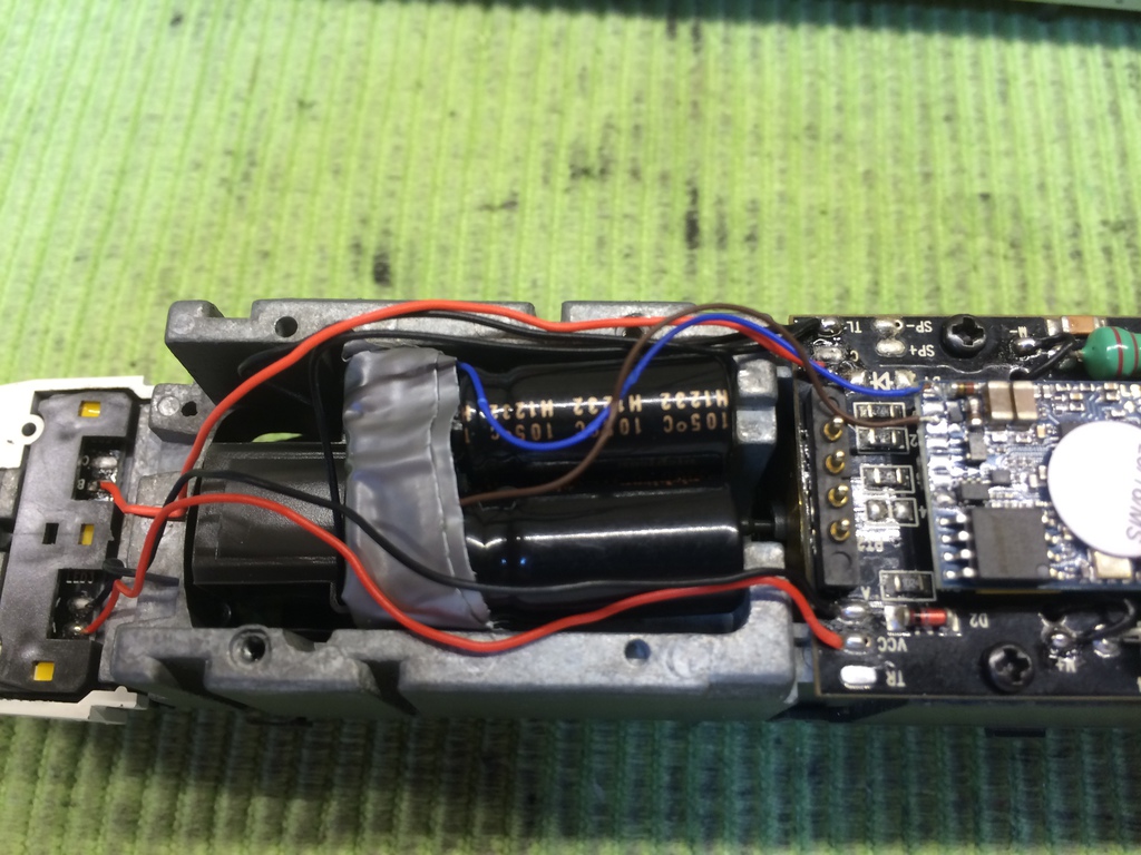 Het feit dat er twee draden, dus van het linker wiel en rechter wiel, op het soldeereilandje TR zitten duidt er zeer waarschijnlijk op dat er gewoon geisoleerde wielen onder zitten. Er zijn meer merken (zoals Piko, Mehano) die dat op deze manier doen.