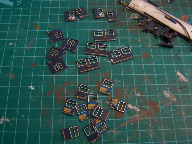 Dus elk raam losgesneden en de tussenruimte met styreen opgevuld, de deuren zijn ook eigen baksels.