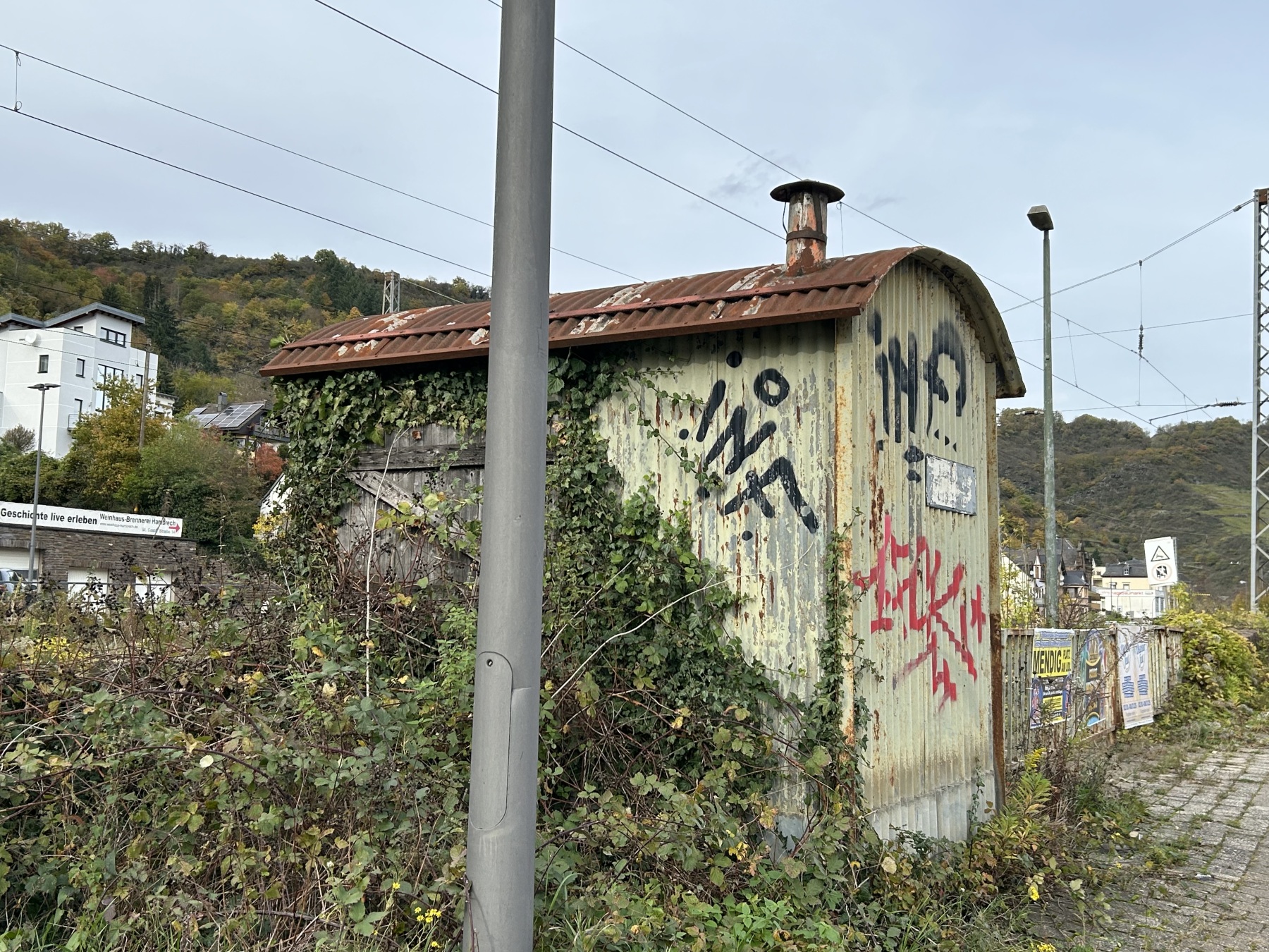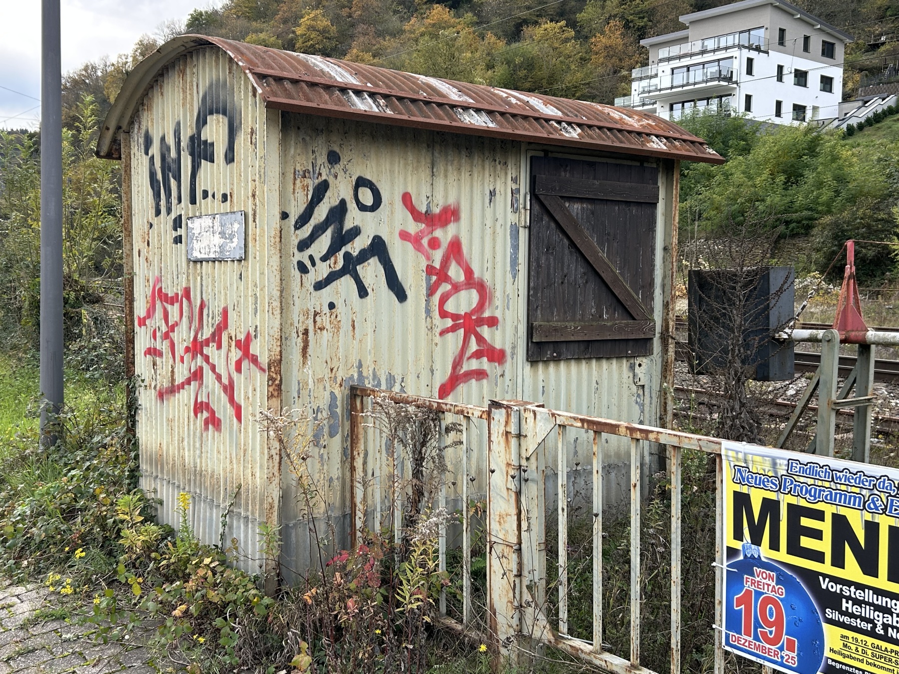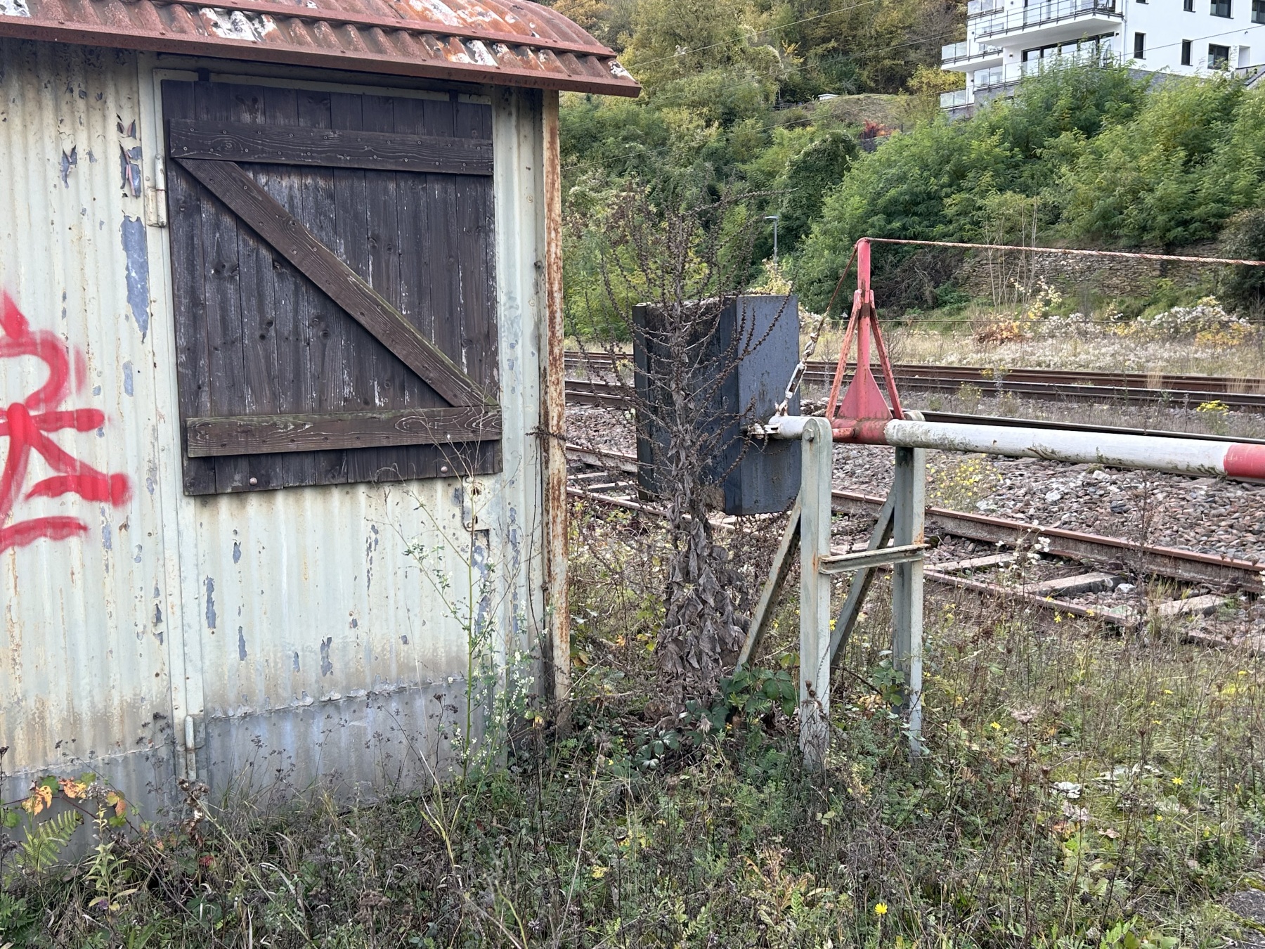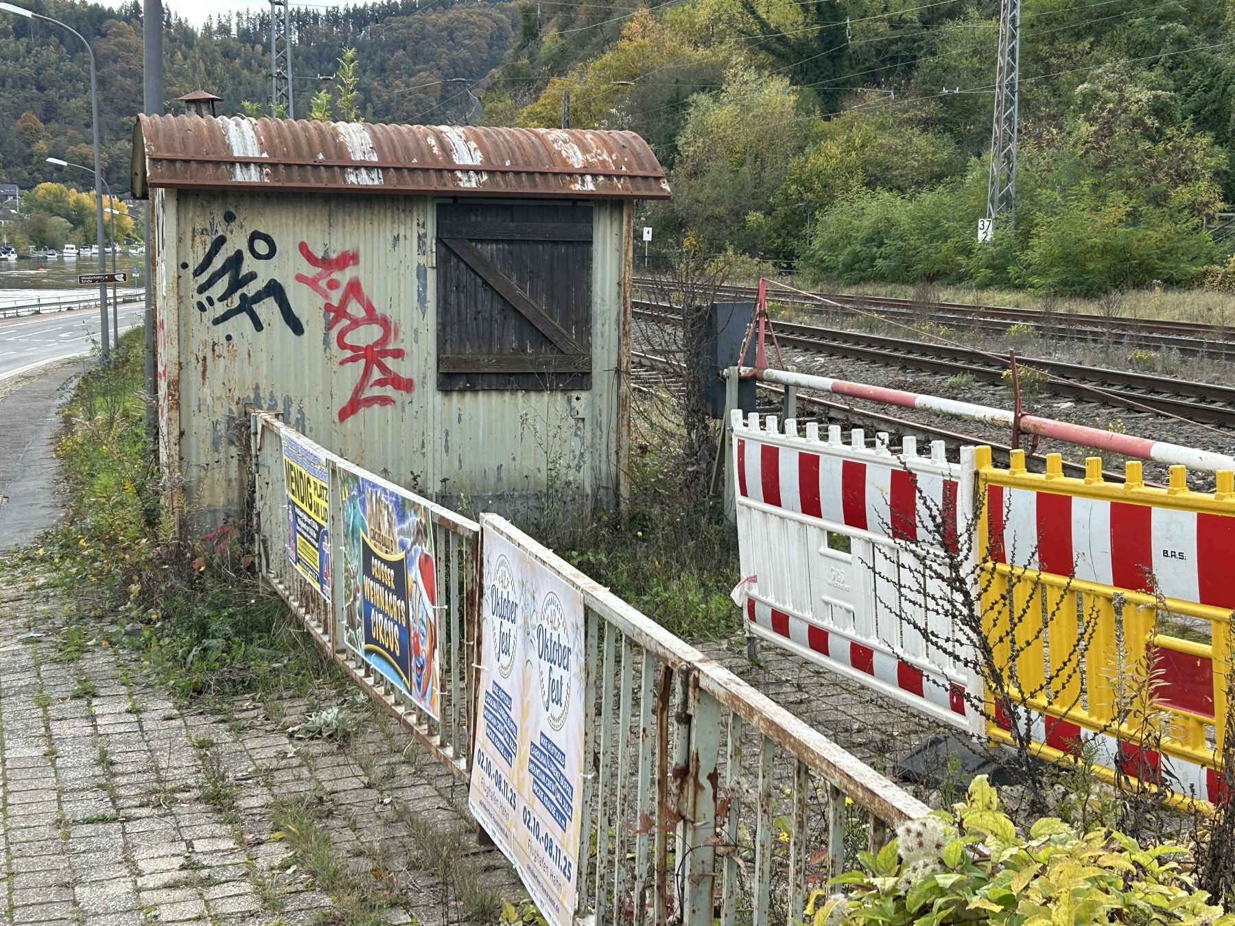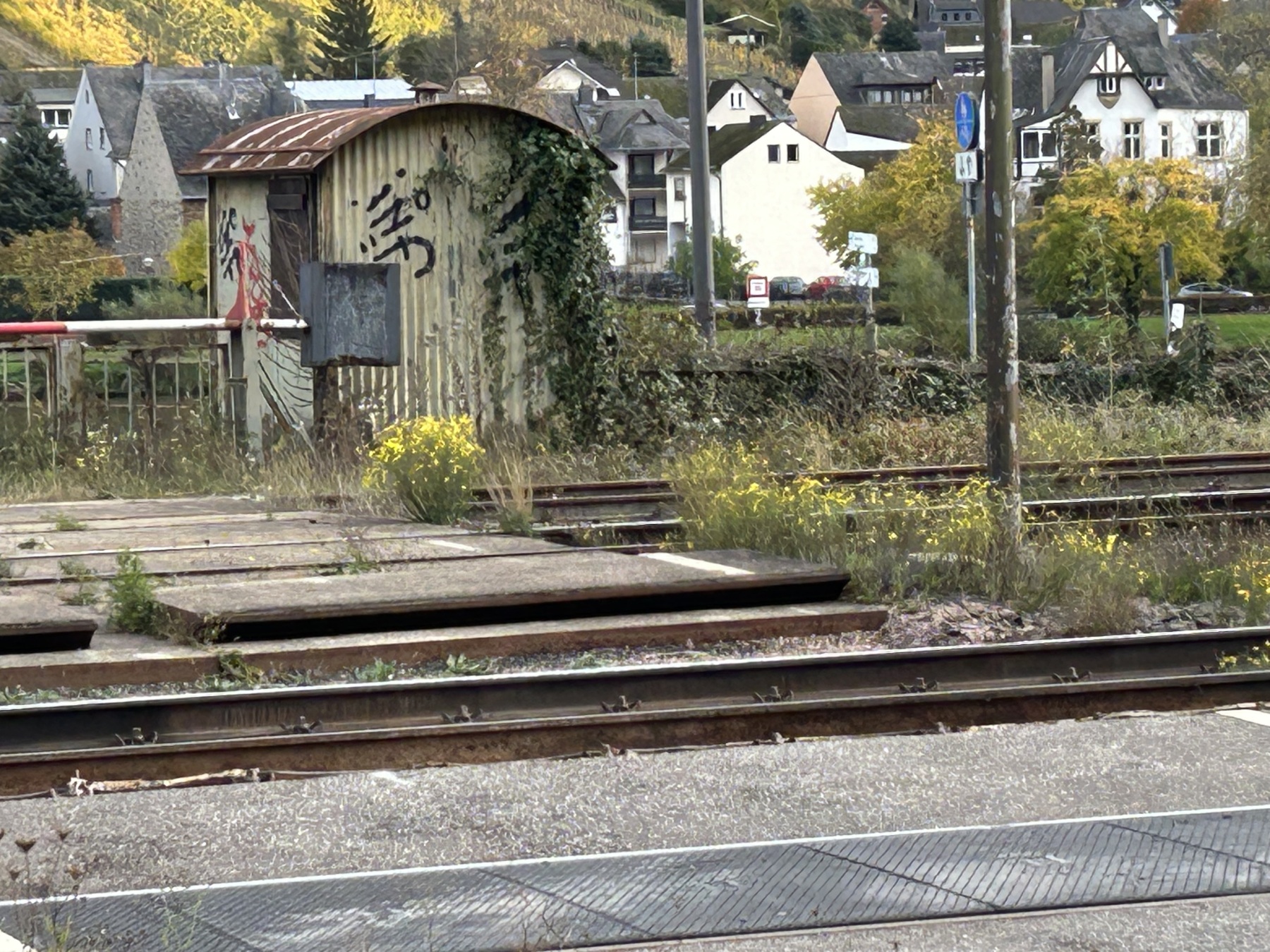 Station Treis-Karden had bij een afgesloten overweg nog een originele