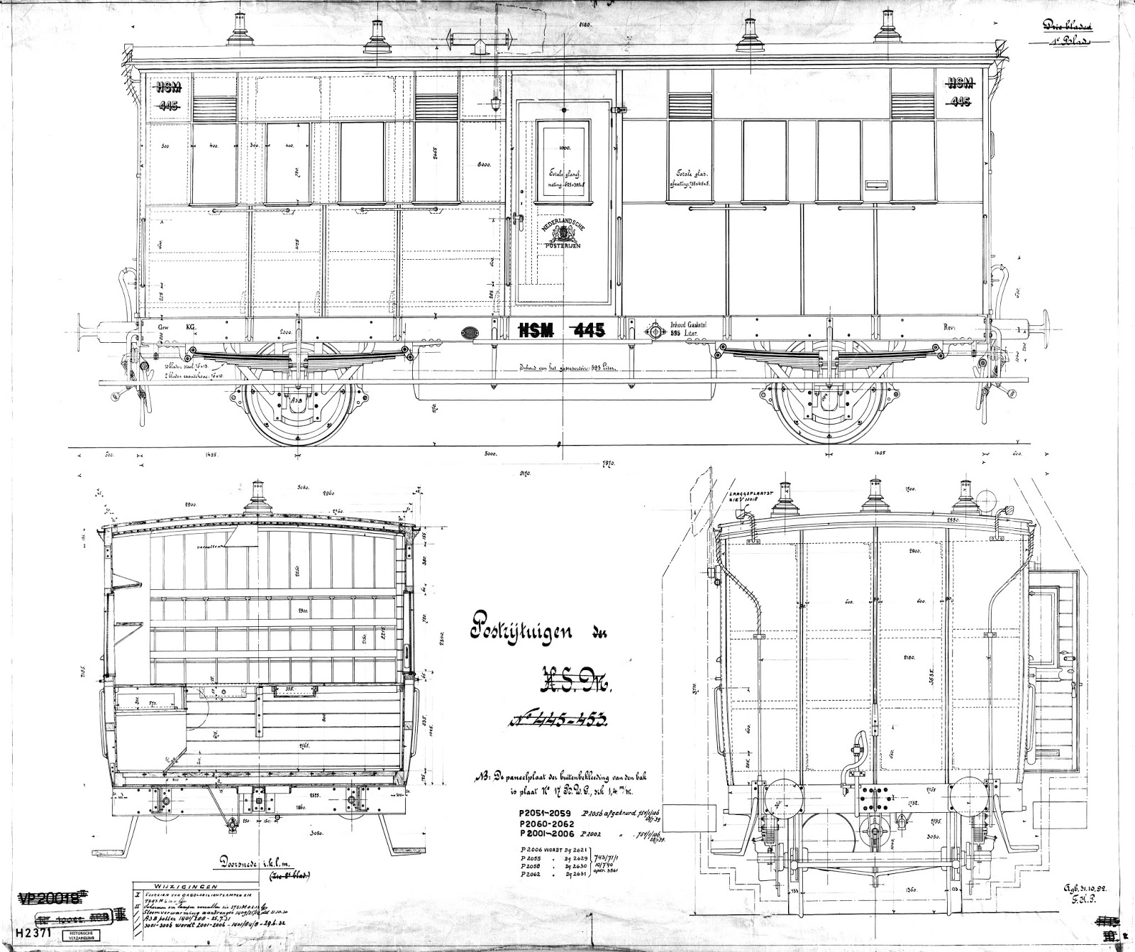 Begonnen met het HSM postijtuig, dit is een klein 2assig rijtuig. Later in de NS tijd ook in gebruik als Dg, en zelfs als 3e klas rijtuig.