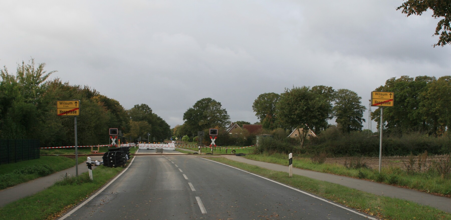 2775 De Wilsumer Straße blijft tot en met vrijdag 24 oktober volledig afgesloten tussen de Hoogsteder Hauptstraße en de Haftenkamper Diek. Er is een omweg aangegeven. Foto: Henrik Hille