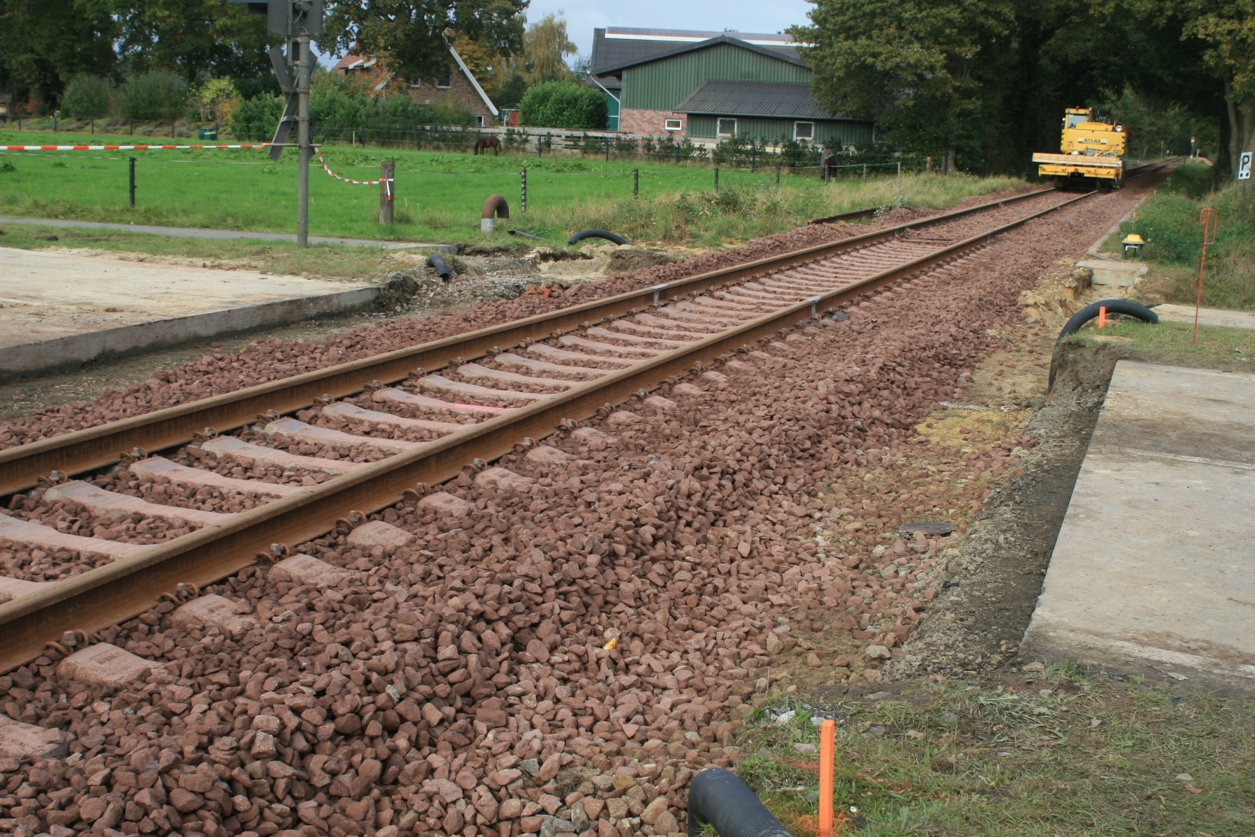 Het nieuwe wissel 55W13 bij overweg Bu140 (65.249) Westerhoek, ligt nog steeds onaangeroerd te wachten op de dingen die komen gaan.