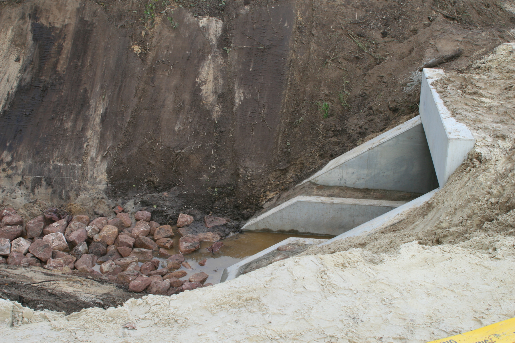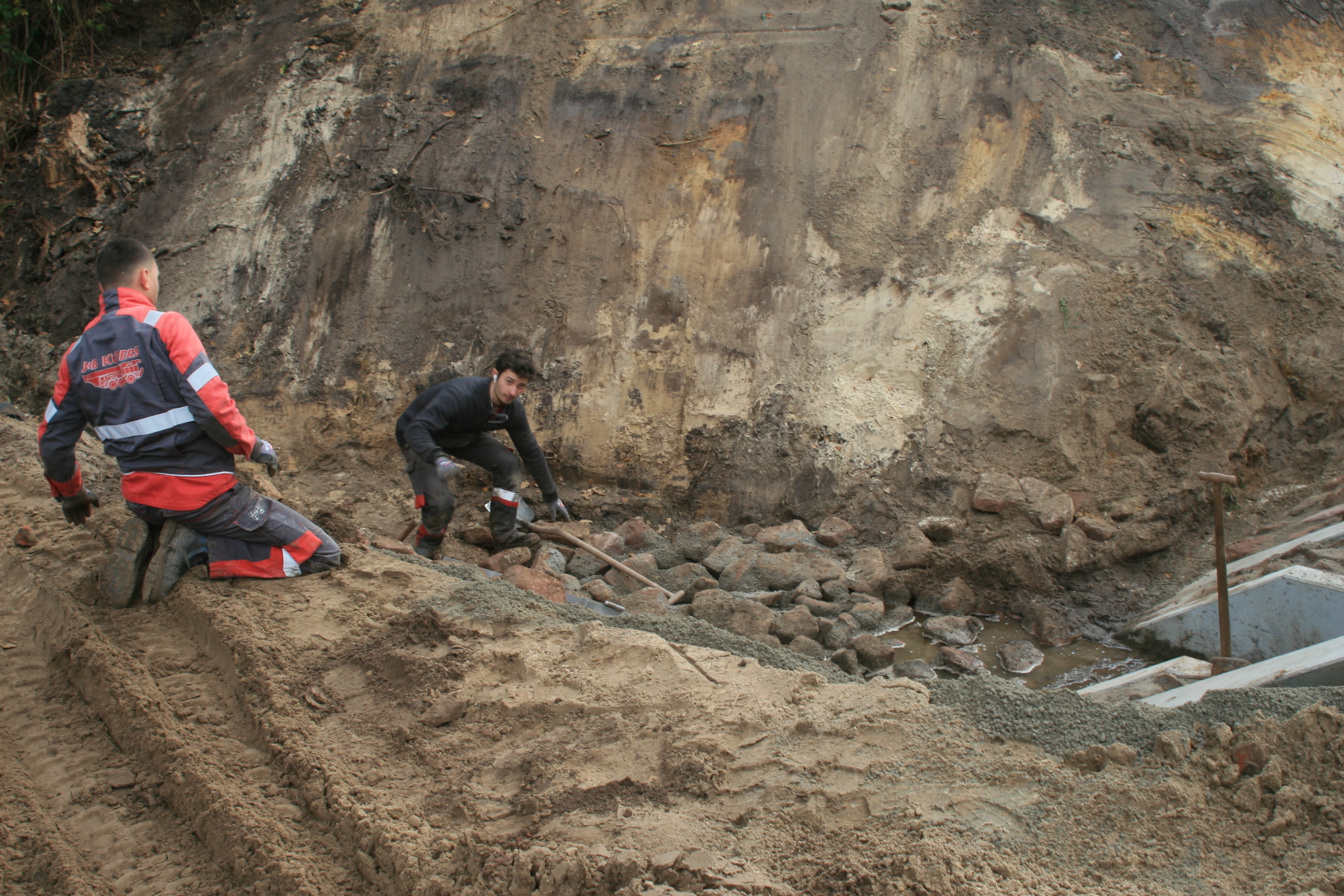 2801-1996 De aannemer is nog druk om de beschoeiing van de beek in orde te maken.