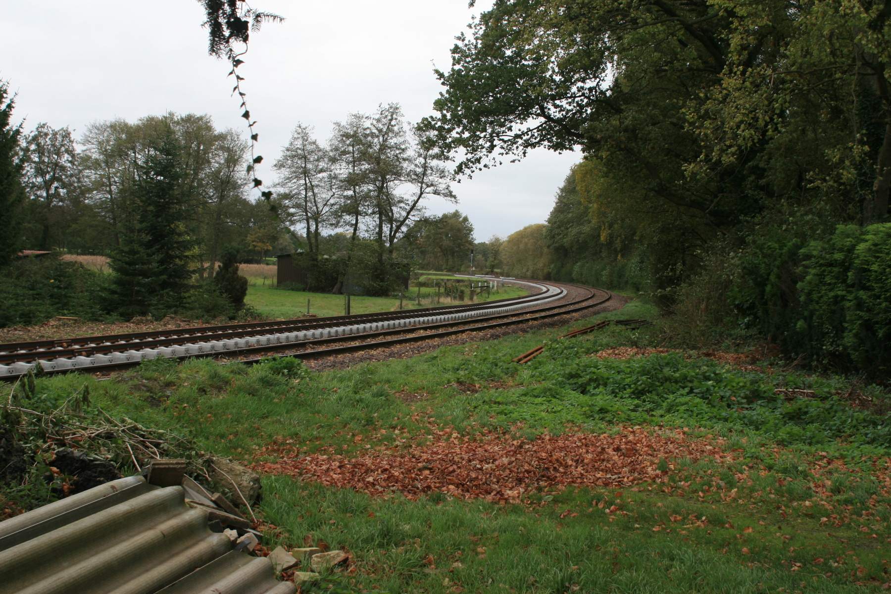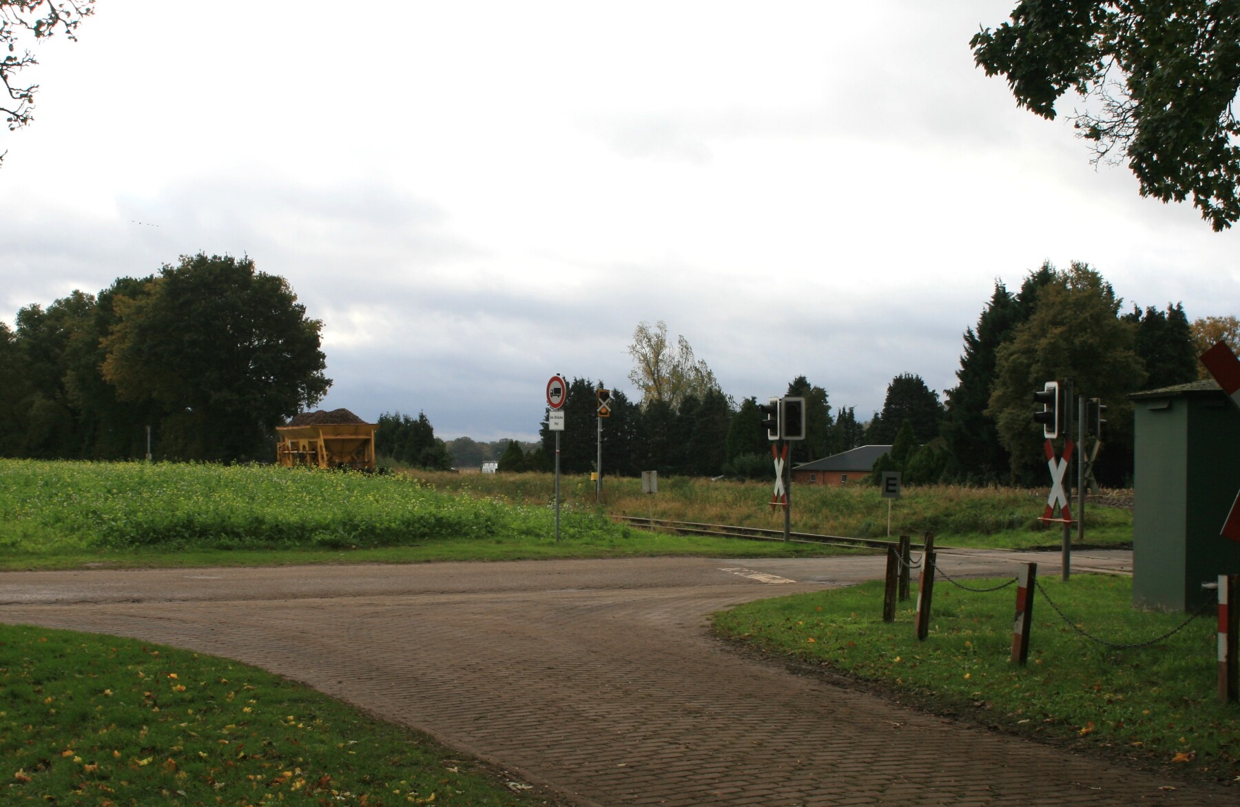 2820-1738 De betonnen bielsen geven een indicatie waar de overweg moet komen